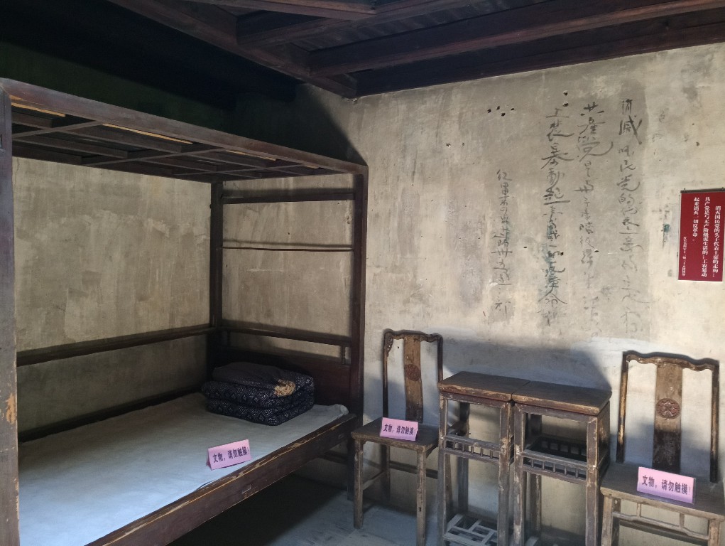 茅坪八角楼上。1927年10月至1929年2月,毛泽东同志经常在这里居住和办公,并写下了《井冈山的斗争》《中国的红色政权为什么能够存在》等光辉著作。楼内现还存放着毛泽东同志当年使用过的大砚台、竹筒铁盏清油灯等物品。