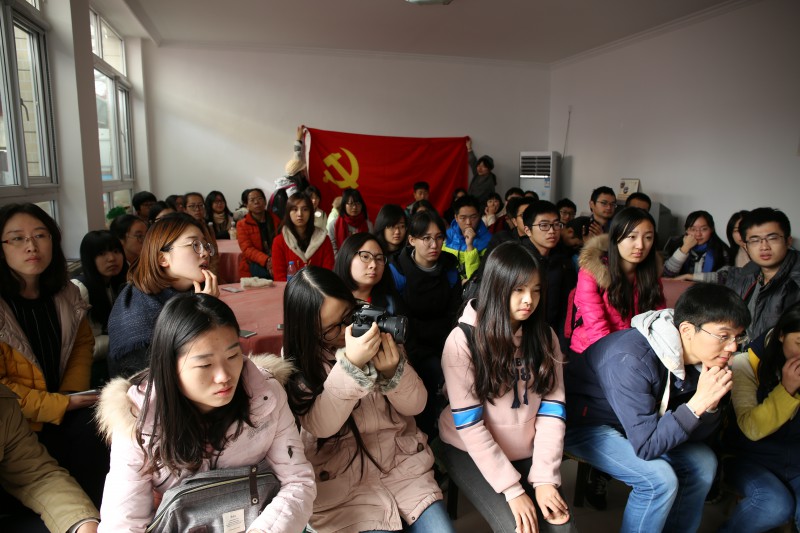 在地道遗址的参观结束后,团队一行人来到当地农家大院上了一堂特殊的“党课”。抗战时期焦庄户儿童团委员,现已年过八旬的焦志斌老人给大家讲述了焦庄户村的抗战历史。在老人的讲述中,我们了解了抗战时期焦庄户村共产党员的艰难建设、日本侵略者的残暴罪行、中国共产党领导人民群众与日本侵略者的正邪较量。他多次提到了当时的村支部书记马福,正是在他的带领下,焦庄户的革命与建设才开展得有声有色。焦志斌老人精神矍铄,幽默的语言中透露着共产党人的坚毅和果敢。老人最后语重心长地说:“希望大家铭记历史,继承和发扬革命先辈的优良传统,坚定理想信念;好好学习,天天向上,报效祖国,服务人民!”对于老人的教诲与嘱托,全体师生报以长久而热烈的掌声。