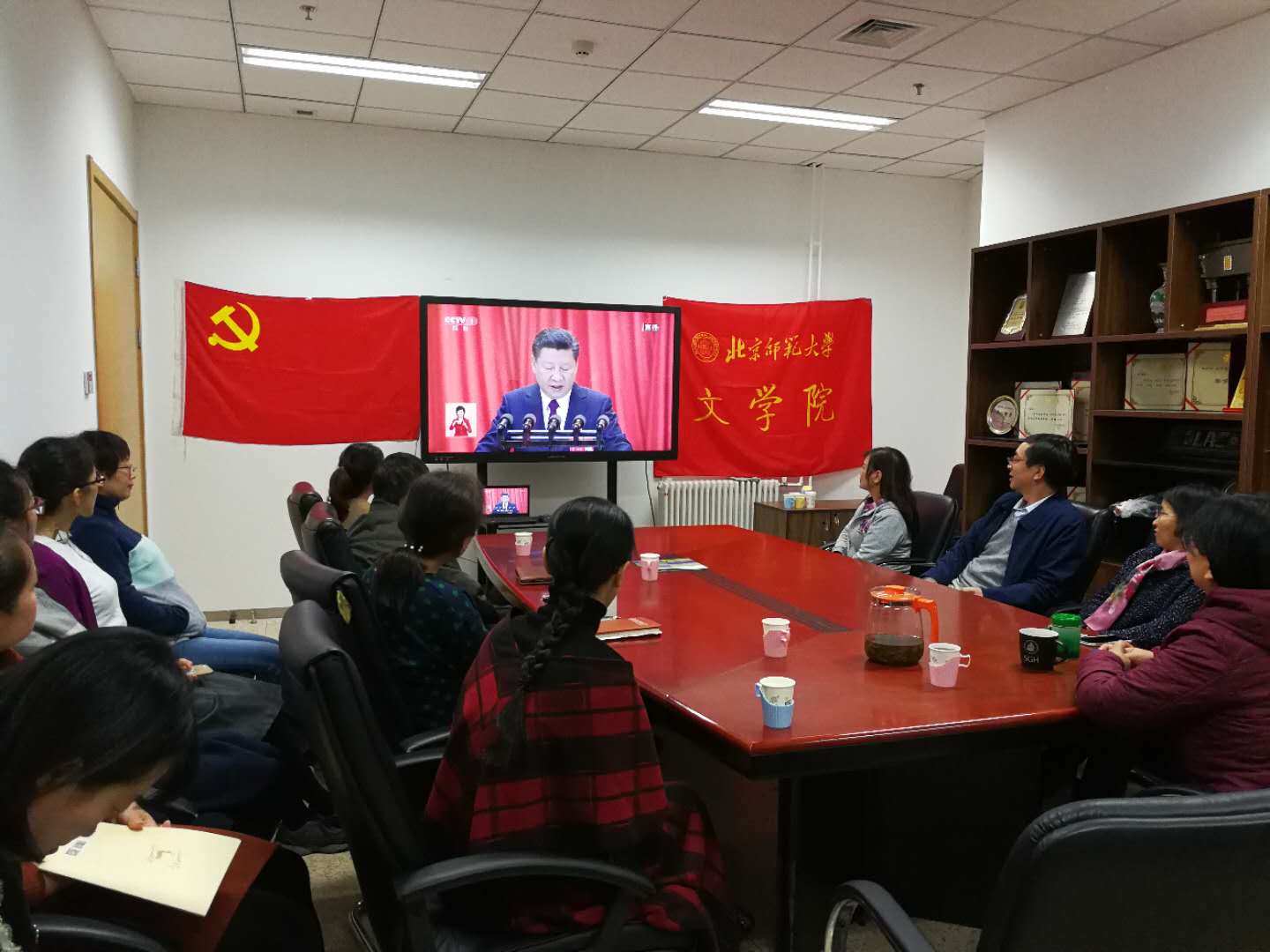 2017年10月18日上午9点,必威betway西汉姆分党委组织师生代表在5037会议室集中观看十九大开幕会直播,认真聆听习近平总书记所作的报告。王立军书记、方红珊副书记、周云磊副书记同大家一起观看直播。