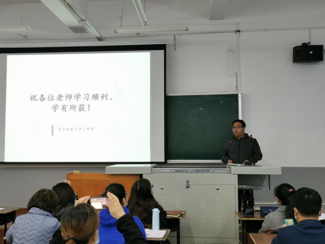 张帆老师向各位老师详细介绍了此次项目的背景与课程安排。北师大作为此次项目的承办单位,克服种种困难,精心进行前期调研,着力完善课程安排。通过对前期跟岗过程中的调研分析,结合实际需求,针对老师们最关心的重点难点安排集中学习期间的课程,力求能够更加精准地解决学员的实际问题。此次培训后还将设置线上跟踪反馈、交流指导的环节,提供更全面、有针对性的训后指导。最后,张帆老师希望大家能够借助此次集中学习的机会,自我思考、自我沉淀,结合前期跟岗学习体会和自身教学经验,将每一堂课的内容为我所用,学有所得、学有所成,并衷心祝愿各位老师在北京度过愉快的学习时光。