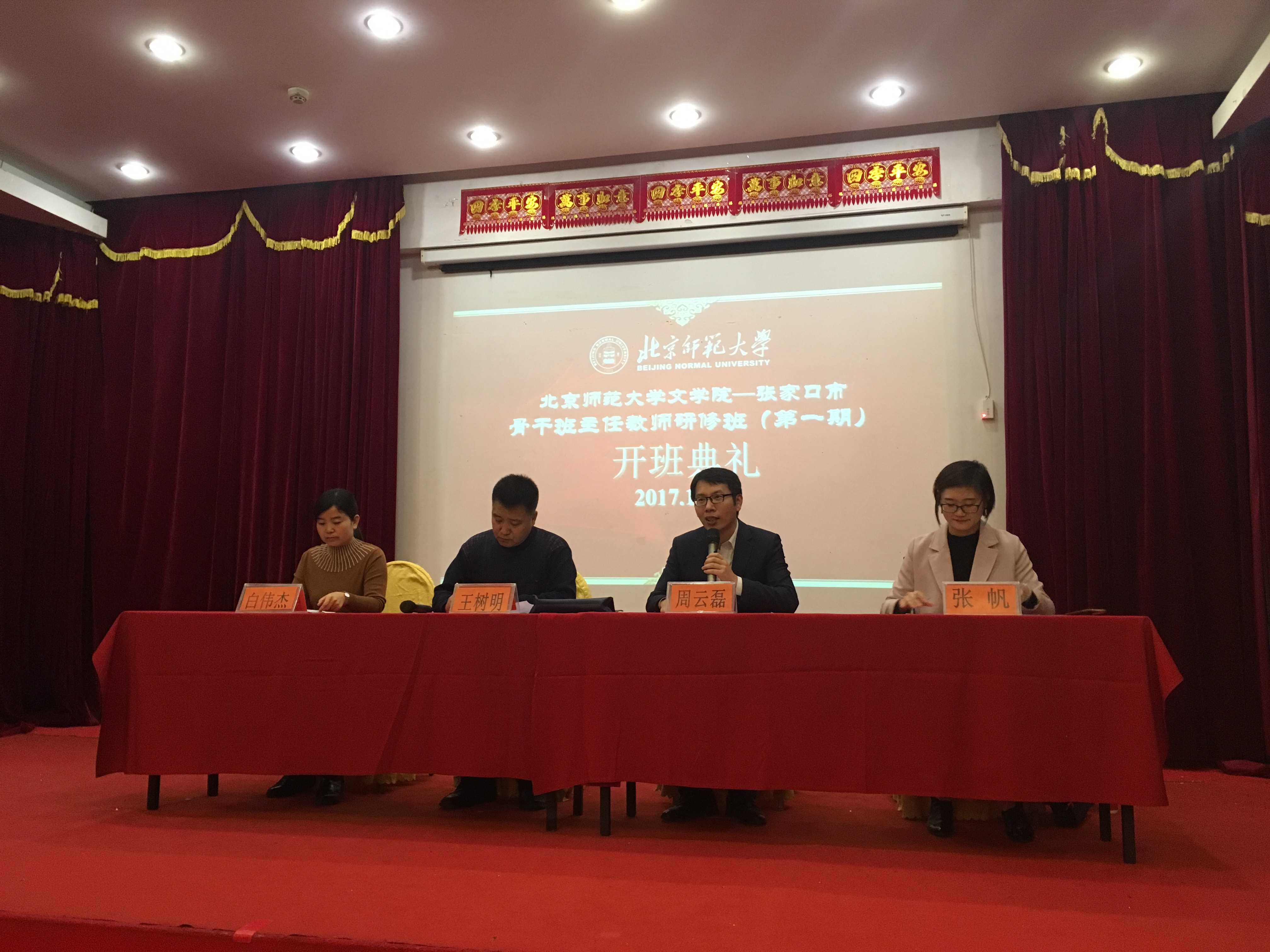 2017年12月18日星期一上午八点三十分,必威betway西汉姆张家口市骨干班主任教师研修班(第一期)开班典礼于北京天方饭店三层多功能厅顺利召开。此次典礼由必威betway西汉姆发展与合作中心副主任张帆主持,张家口市教育局教科所副所长王树明以及必威betway西汉姆党委副书记周云磊出席了此次开班典礼。