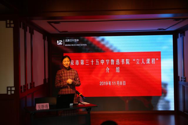随后本期课程正式开始。首先由北京第三十五中学鲁迅书院的主任吴静瑾老师为大家带来有关“立人课程”的精彩讲座。三十五中学的“立人课程”共分普惠课程、拓展课程、研究课程三个层次,层层递进,循循善诱,启发学生自己发现问题,解决问题,不仅能锻炼提高思维能力,更能引导学生主动靠近鲁迅这位先贤,触摸他的伟大灵魂,感受他的深邃思想,达到“立人”的目的。吴老师特意强调,这次课程就在鲁迅当年旧居的堂屋进行,这让本次课程有了更加特殊的意义。