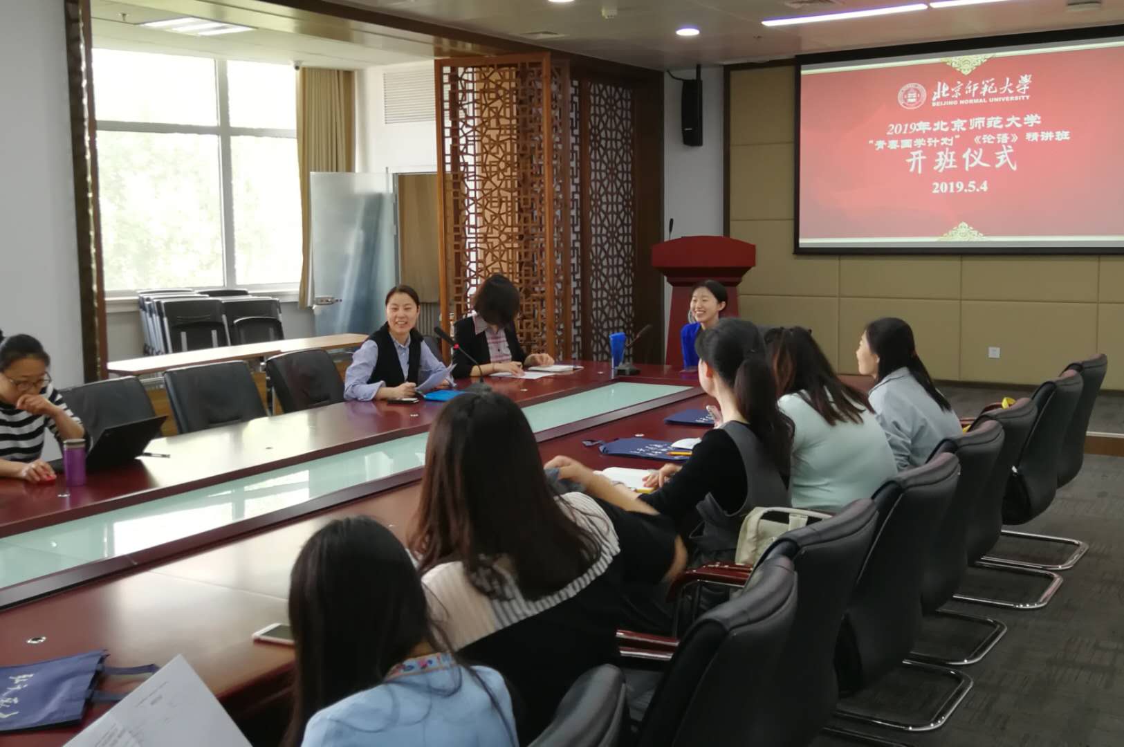 2019年5月4日上午8点半,betway·必威西汉姆联“青春国学计划”《论语》精讲班开班仪式在betway·必威西汉姆联本部主楼C 区5049顺利召开。我院发展与合作中心的老师与来自北京市八一学校、北师大三附中、北京市广渠门中学等京内外的中学语文教师参加了开班仪式。