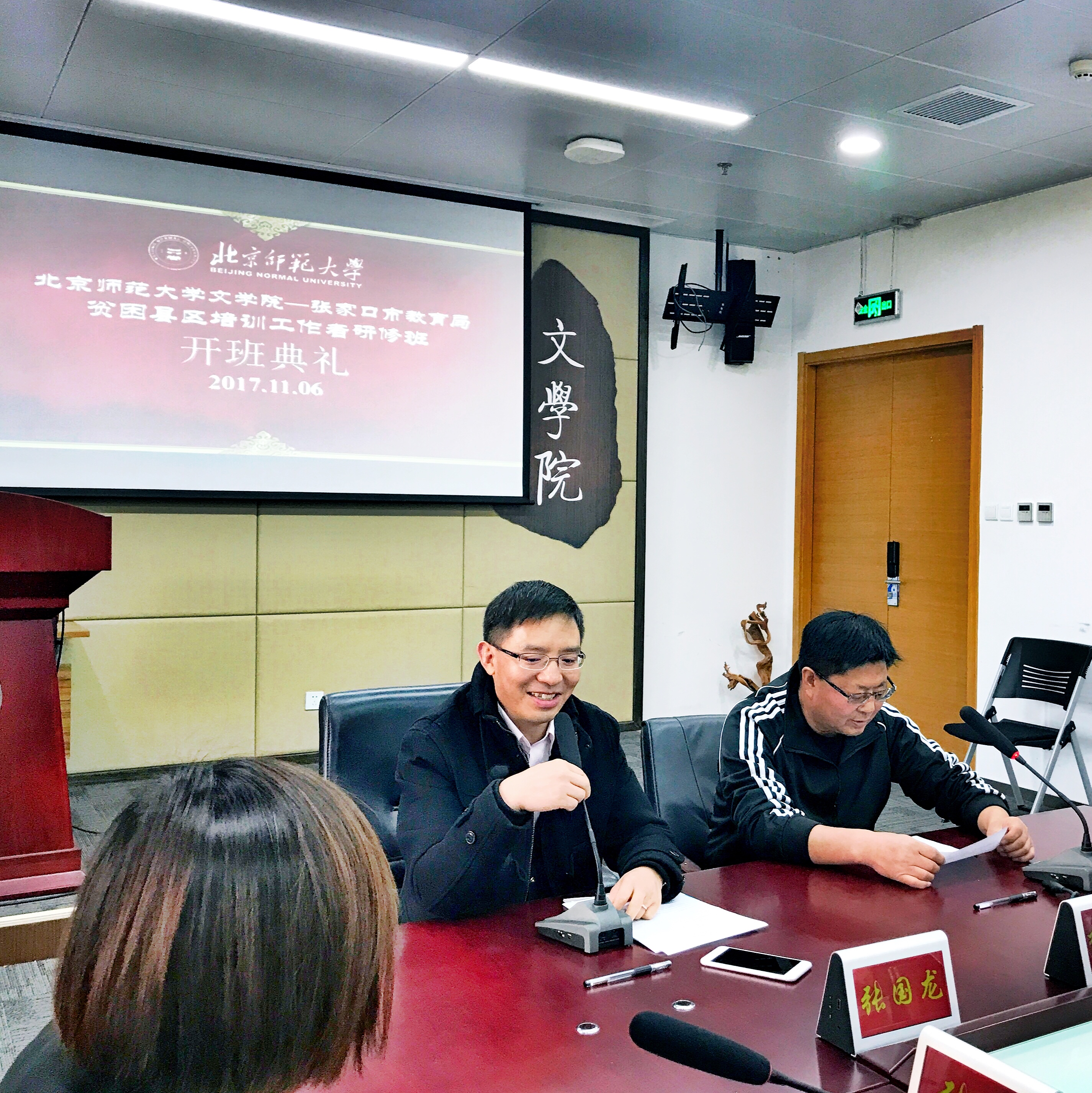 2017年11月6日星期一上午8时30分,必威betway西汉姆张家口市贫困县区培训者研修班开班典礼于betway·必威西汉姆联后主楼5049教室顺利召开。此次典礼由必威betway西汉姆发展合作中心副主任张帆主持,张家口市教育局师教科李良民科长以及必威betway西汉姆院长助理张国龙出席了此次开班典礼。