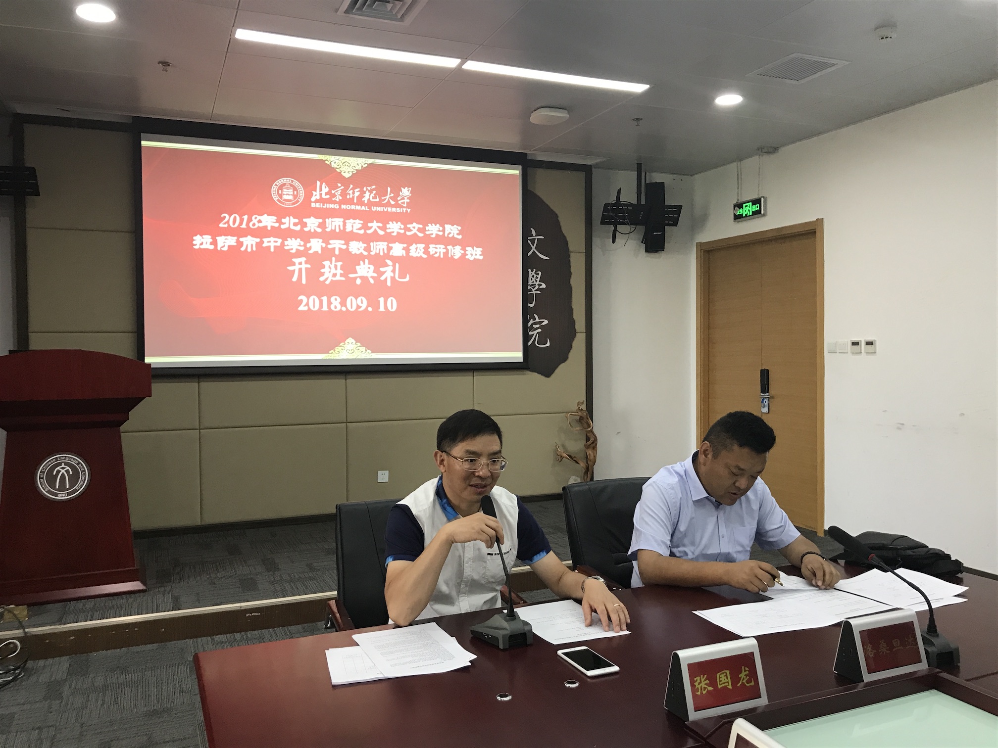 2018年9月10日星期一上午八时三十分,必威betway西汉姆-拉萨市中学骨干教师高级研修班开班典礼于betway·必威西汉姆联主楼C5049顺利召开。拉萨市教育局受援办主任洛桑旦达、必威betway西汉姆发展与合作中心主任张国龙教授及拉萨教育局选派的30位中学骨干教师出席了此次开班典礼。