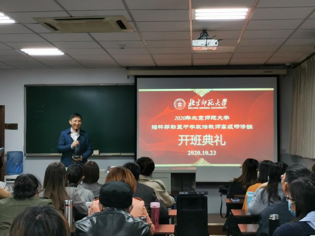 2020年10月23日上午8时30分,“betway·必威西汉姆联-锡林郭勒盟中学政治教师高级研修班”开班典礼顺利举行。锡林郭勒盟教育局师资科科长金丽、必威betway西汉姆教授张国龙出席了典礼。