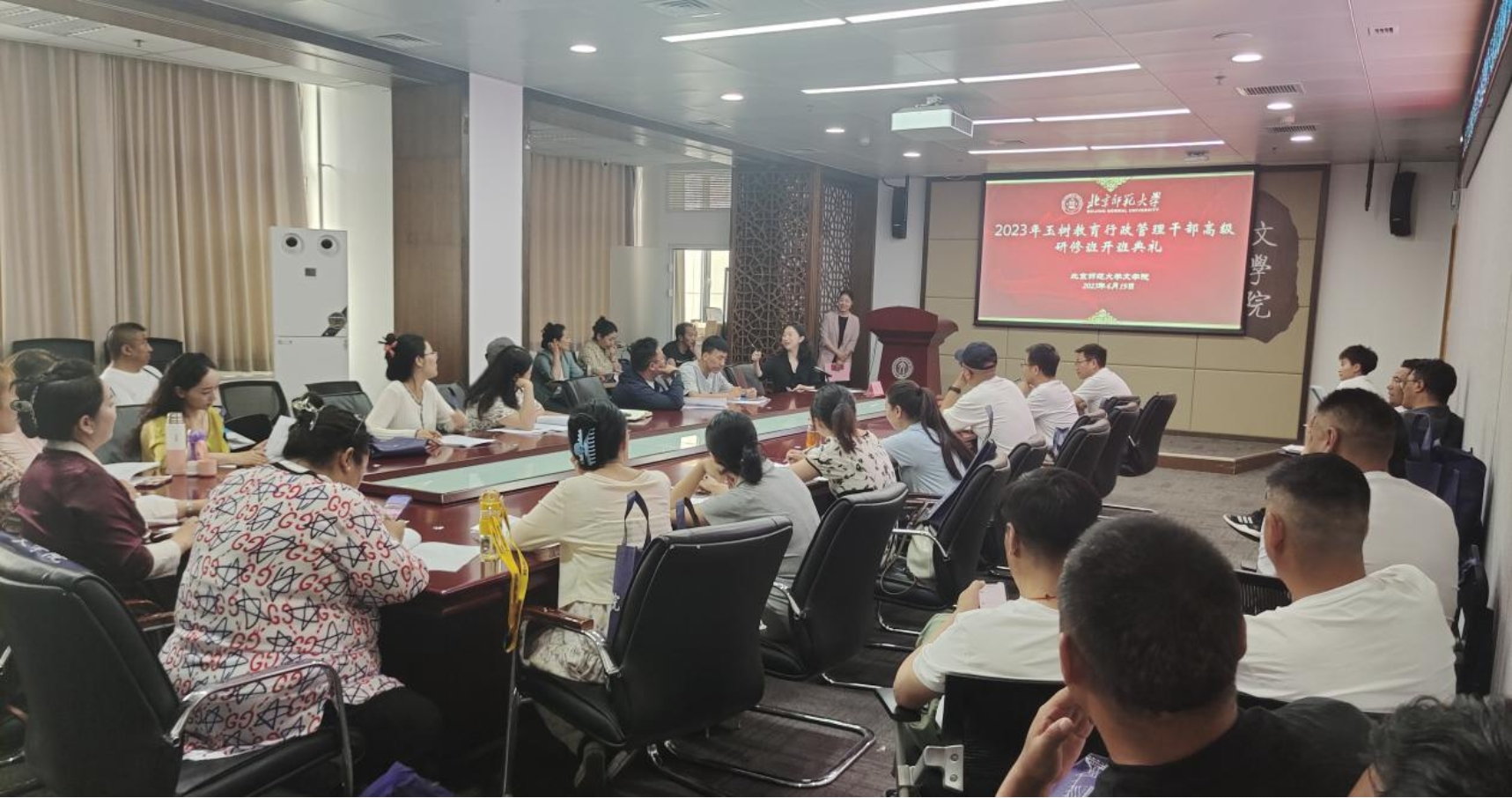 2023年6月19日上午8时30分,2023年betway·必威西汉姆联-玉树教育行政管理干部研修班开班典礼在北京举行。必威betway西汉姆发展与合作中心执行主任向飞,以及45位来自玉树的教育行政管理干部参加了典礼,典礼由发展与合作中心牛学娇老师主持。