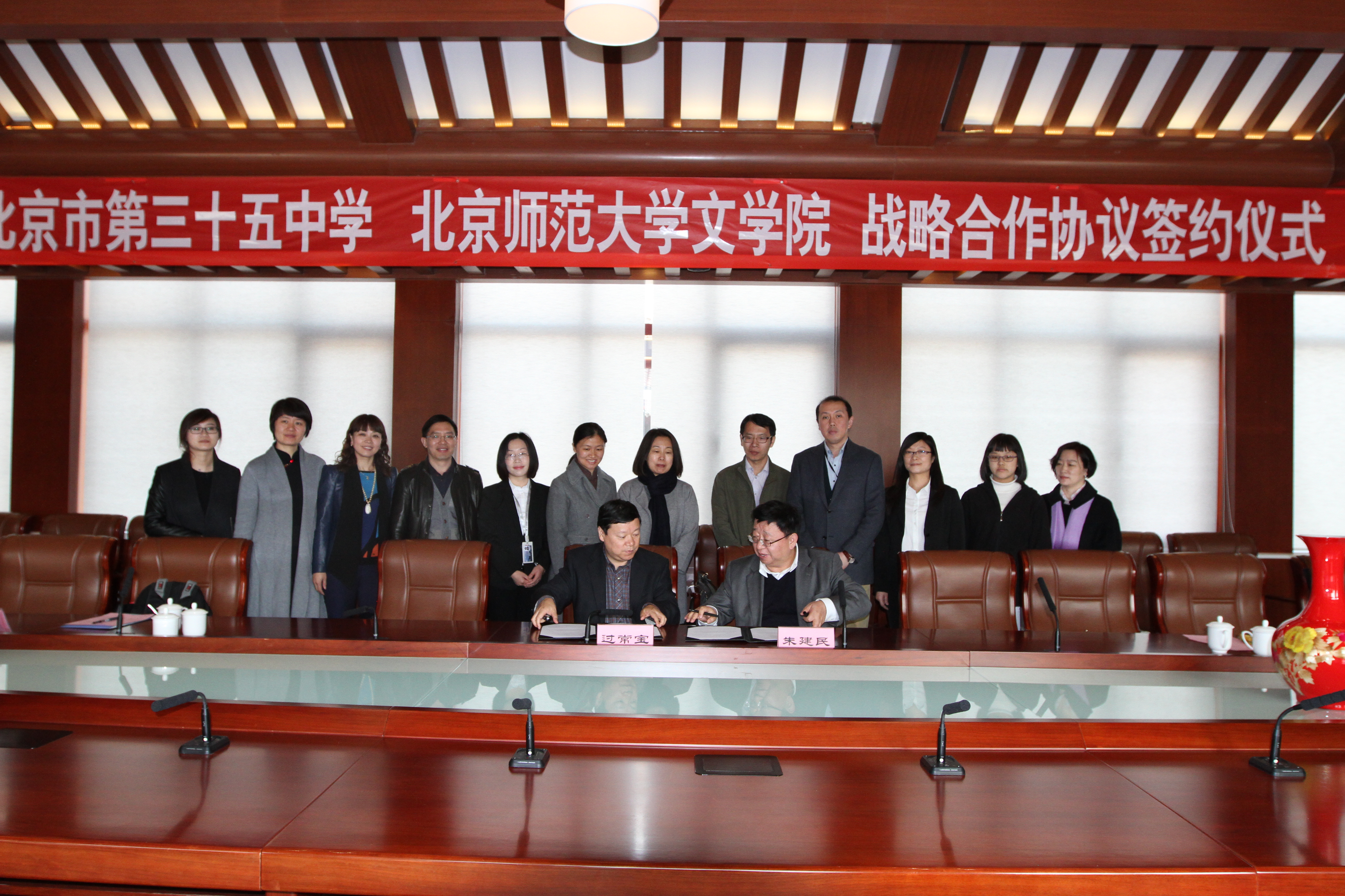 本着立德树人的共同目标,为共同推动双方师生的发展,实现高等教育与基础教育之间的无缝对接,推进双方的合作、交流与共同发展,北师大必威betway西汉姆与三十五中将在教学改革、人才培养和社会活动等多方面开展战略合作。必威betway西汉姆院长过常宝、党委副书记周云磊、院长助理张国龙,北京市第三十五中校长朱建民、副校长黄鹏,以及双方师生代表出席了签约仪式。