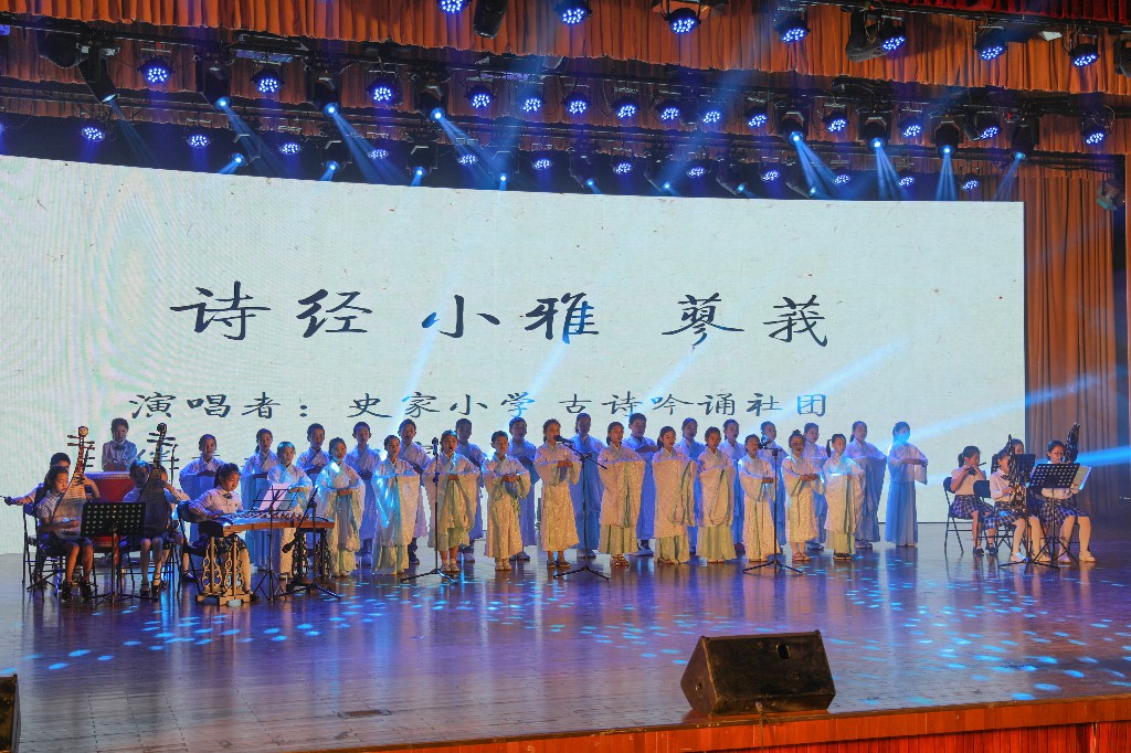 古典诗词吟唱形式坚持“以旋律表现诗词,让诗词融入旋律”,各校吟唱成员在表演中传达着对诗词吟唱的全新理解和深切热爱,林天然也带来了《唐多令》、《泽陂》两首古典诗词。他的音乐创作对古典诗词进行再解读,展现了国学经典的新面貌。活动在betway·必威西汉姆联南山诗社历任社长及全体吟唱团成员共同演绎的《蓼莪》中结束。大、中、小学学子联手为观众带来了一场精彩的诗词吟唱盛宴。