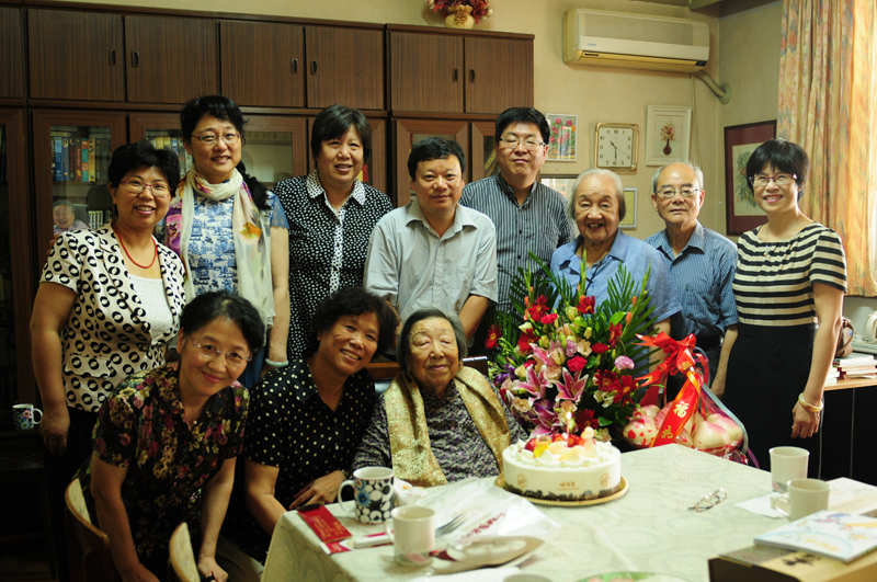 2015年7月8日是我院退休教师、著名学者杨敏如先生100岁寿辰。我校离退休工作处、民盟北师大基层委员会、老教师代表和老学生代表等十余人登门拜访,点燃生日蜡烛,献上鲜花和寿桃,为杨先生祝寿。
