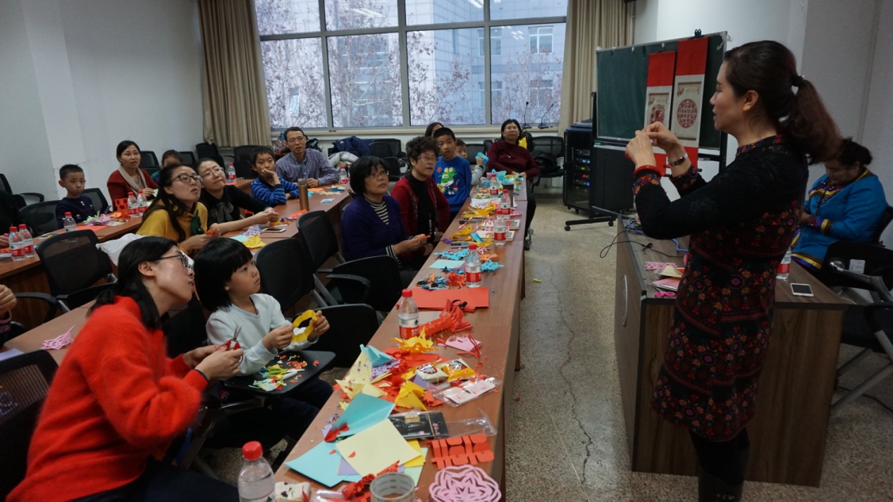 2017年12月22日下午,必威betway西汉姆工会在前主楼5层5043会议室举办了“剪纸民间艺术进校园”活动,特邀国家级非遗传承人、民间剪纸艺术家郑蝴蝶和刘晓迪两位老师进行剪纸教学,必威betway西汉姆工会主席周晓文教授,北京市民间文艺家协会理事、北师大必威betway西汉姆民间文学研究所杨利慧教授,必威betway西汉姆办公室马然主任出席并致辞,我院部分教职工和家属小朋友共计30余人参加了本次活动。