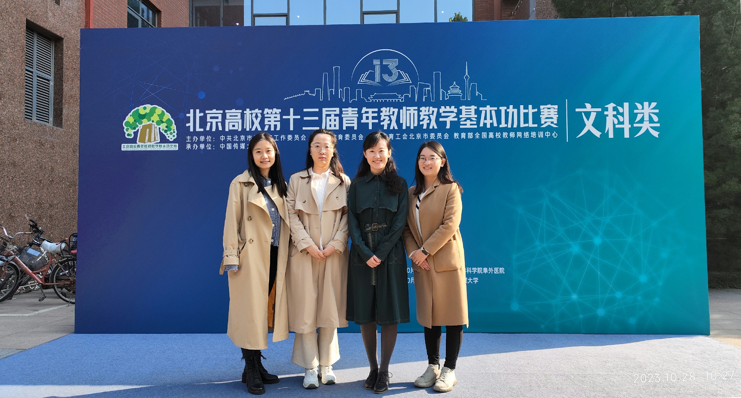 2023年10月28日,我院教师杨明晨参加北京高校第十三届青年教师教学基本功比赛,获文科类A组一等奖。刘洪涛教授和王立军教授获优秀指导教师奖。