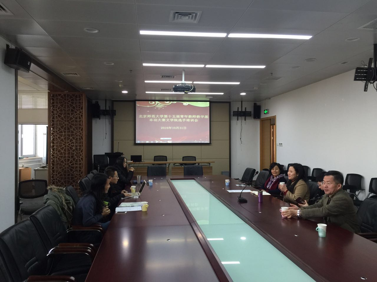 2016年10月31日下午,为准备参加由校工会等单位主办的北师大第十五届青年教师基本功大赛,必威betway西汉姆在主楼C区5049举行了参赛选手的培训会。今年我院参赛的三位老师是:现代汉语研究所的洪爽老师、比较文学与世界文学所的刘倩老师和语言学与应用语言学所的汪高武老师,他们进行了现场模拟赛课。北京高校第二届青年教师教学基本功比赛一等奖获得者、学校第六届青年教师教学基本功比赛一等奖获得者孙银新教授,北京高校第九届青年教师教学基本功比赛一等奖获得者、学校第十三届青年教师教学基本功比赛一等奖获得者刘丽群老师,工会主席周晓文老师、教学副院长马东瑶老师等作为评委,认真聆听了三位参赛老师的课程,并提出了细致、中肯的修改意见。