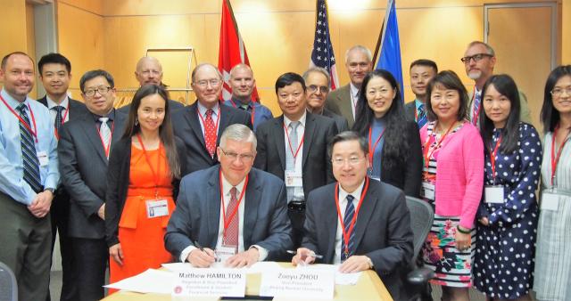 2018年4月30日到5月4日,我院过常宝院长随同周作宇副校长访问美国旧金山州立大学、斯坦福大学及俄克拉荷马大学,与这几所大学的中文学科及孔子学院进行了友好交流,形成了多个合作意向。期间,周作宇副校长与俄克拉荷马大学Mattew Hamilton副校长签署了在俄大合作创办中必威betway西汉姆的协议。中国外交部驻休斯敦教育参赞、国家汉办驻美工作人员等参加了签署仪式。