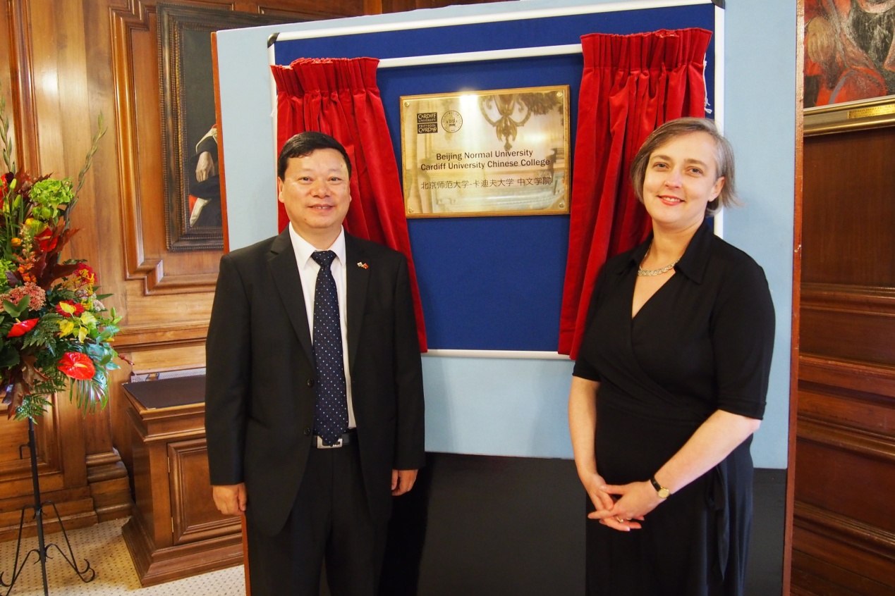 BNU-CARDIFF中必威betway西汉姆是我院海外办学的一次新尝试,由我院与卡迪夫大学现代语言学院共同承办。中必威betway西汉姆主要招收欧洲学生,学生将在英国卡迪夫大学和betway·必威西汉姆联两地完成学业,合格学生将核发我校毕业证书。该中必威betway西汉姆的成立得到中英两国政府的关注和支持,并被纳入中英高级别人文交流机制。此次揭牌仪式即属于2015年中英高级别人文交流机制会议的一个环节。我院院长过常宝教授、卡迪夫大学现代语言学院院长克莱尔教授参加了揭牌仪式。
