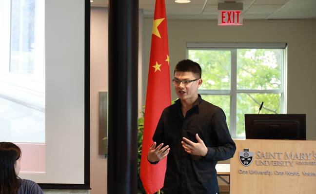 当地时间7月4日下午16点,加拿大圣玛丽大学为本次交流项目举行了隆重的开班典礼暨欢迎晚宴,圣玛丽大学校长在欢迎会上对北师大师生的到来表示热烈的欢迎,并向同学们传达自己对于文化交流与融合的看法,他希望通过这次活动,能够为大家提供一个了解北美历史文化、提高英语应用能力、体验异域风情的机会,真正促进中加文化的交流和共同进步。校长声情并茂的演讲获得了在场师生的热烈掌声。