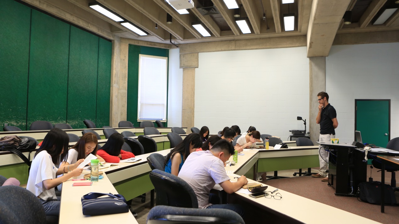 每天下午安排的是学术英语课(EAP),课程内容包括辩论技巧、演讲技巧、英文原著精读等。学生们被分为两个班进行教学,课上,老师从听、说、读、写四大部分对学生们进行高强度训练,大大提高了学生们的口语交际能力和英语应用能力。