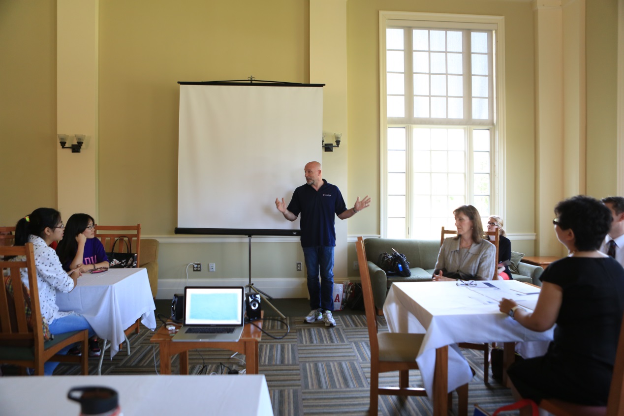 7月13日上午,阿卡迪亚大学及圣玛丽大学的领导、相关教职人员共同为暑期小学期项目师生举办了欢迎茶会。阿卡迪亚大学副校长Dr.Bob Perris在茶会上对北师大师生的到来表示热烈欢迎,他希望此项目能给学生们提供一个了解加拿大历史文化、提高英语应用能力和感受加拿大当地生活的机会。此次加拿大小学期项目的任课老师及学生助教也与师生们进行了会面及交流,并对项目作了详细介绍。