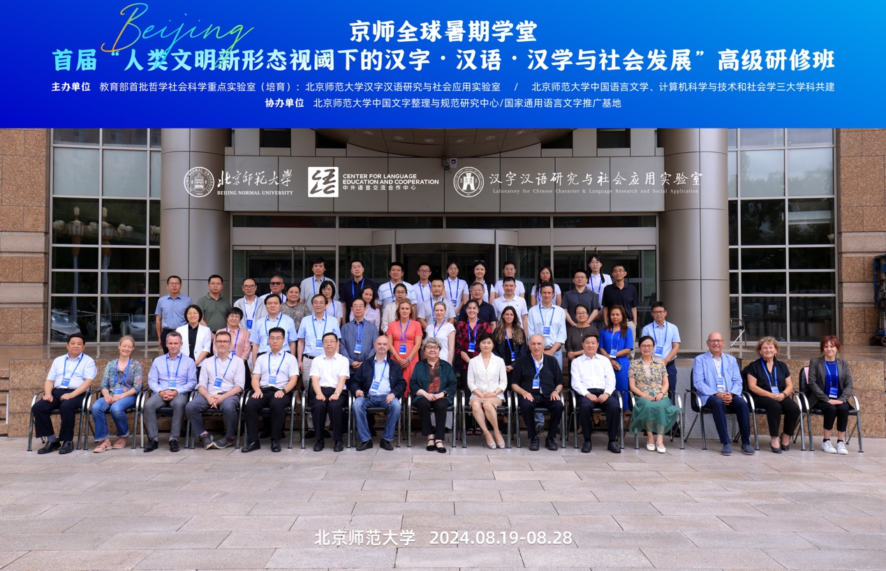2024年8月20日上午,京师全球暑期学堂首届“人类文明新形态视阈下的汉字·汉语·汉学与社会发展”高级研修班开班式在betway·必威西汉姆联隆重举行。此次研修班由betway·必威西汉姆联汉字汉语研究与社会应用实验室主办,邀请了来自俄罗斯、英国、法国、德国、爱尔兰、西班牙、葡萄牙、安道尔、波兰、韩国等国的知名汉学家和教育专家深入交流,共同推动汉字、汉语、汉学与社会发展的研究和应用。