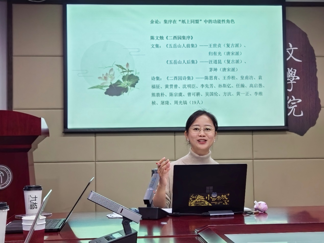 上海外国语大学中必威betway西汉姆胡媚媚主要关注清代文人的结社活动及诗学观念。“社”作为级别很高的文学活动,参与者表现出相近的诗学宗尚和审美追求。清代诗社数量很多,形成了稳定的诗人群体,社诗总集数量也远超前代。胡媚媚进而陈述了清代诗社的基本面貌和结社方式,涉及社诗总集、结社主体、诗歌创作、唱和形式等等。清初文人常常通过集体创作进行交游、学习,再从中脱颖而出。大体而言,清诗创作呈现出个性被群体性笼罩、遮盖的倾向。至于功能性书写,胡媚媚认为清代社诗创作的功能性并不明显。明末清初的结社带有政治抗争性,随着遗民群体的消失,诗社也很快转向文学性、艺术性、娱乐性更突出的活动。不过,诗社总集的序跋的确包含诸多功能性书写。最后,胡媚媚借助具体事例,进一步阐释了清代结社集会对诗歌题材、诗学观念和地域文学传统的形成等多方面的影响。