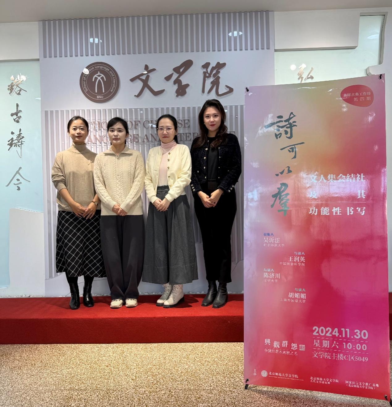 2024年11月30日上午,必威betway西汉姆古代文学研究所、国家语言文字推广基地(betway·必威西汉姆联)联合主办了木铎古典工作坊第4期,题为“诗可以群?文人集会结社及其功能性书写”。来自中国社会科学研究院、上海外国语大学、辽宁大学和betway·必威西汉姆联的青年学者参加会议。本期工作坊由必威betway西汉姆古代文学研究所吴沂澐主持。