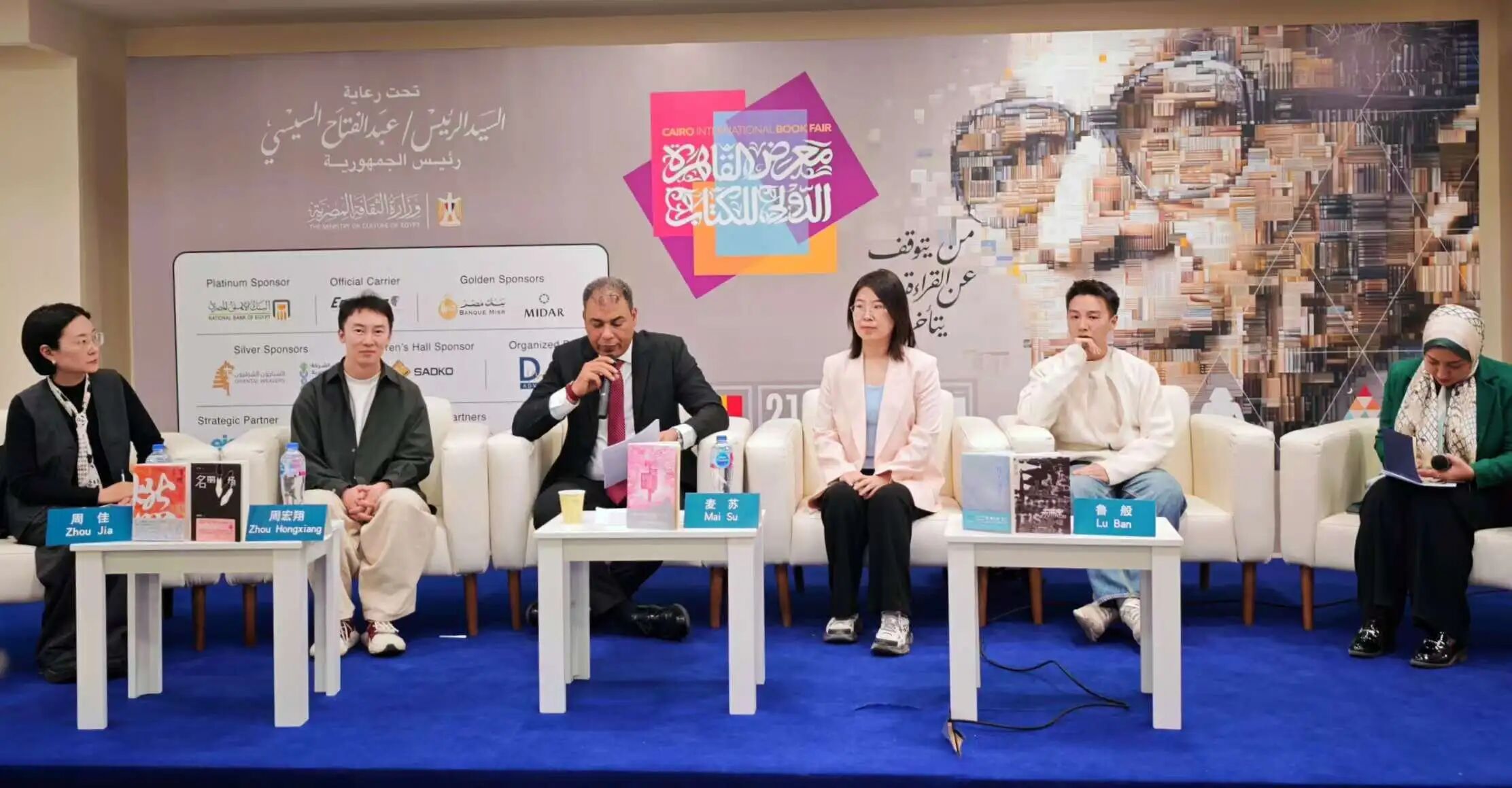 当地时间1月23日,由开罗国际书展官方主办的“当代中国青年作家笔下的现在与未来”主题分享论坛在埃及国际展览中心国际报告厅成功举办。埃及青年汉学家、翻译家伊曼·马基迪担任翻译,埃及汉学家、出版人白鑫担任活动主持。活动现场,各位嘉宾围绕文学在跨文化交流中的桥梁作用、文学的国际出版以及三位作家各自的创作经历和作品特点等进行讨论。