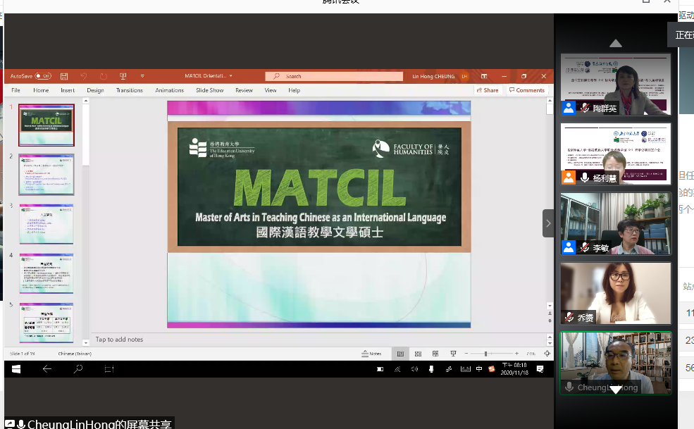 我院外事副院长杨利慧教授、外事项目主管乔赟博士、外事秘书王潇静老师、本科生教务主管陶群英老师、本科生教务秘书李敏老师参会,介绍了该合作项目缘起与整体情况。香港教育大学人必威betway西汉姆国际汉语教学文学硕士课程主任张连航博士、中文研究文学硕士(语文教育)课程主任周潞鹭博士介绍了相关课程的设置和教学安排情况,我院大一至大三学生近三十人参与倾听并咨询了项目具体申请及派出程序等。