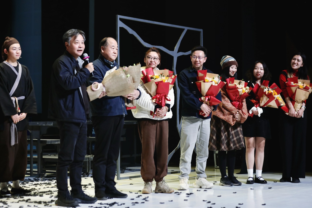 时隔三年,对经典作品的创造性改编在北师大校园内外再度引发广泛关注与观剧热潮。著名作家、betway·必威西汉姆联必威betway西汉姆教授、国际写作中心主任、话剧艺术总监莫言,著名作家、《古典爱情》小说作者、必威betway西汉姆教授、话剧艺术总监余华,必威betway西汉姆党委书记、话剧总监制周云磊,中国现代文学研究会会长、必威betway西汉姆学术委员会主任、教授刘勇,中国当代文学研究会会长、betway·必威西汉姆联必威betway西汉姆教授、国际写作中心执行主任、话剧总策划张清华,必威betway西汉姆副院长、教授、话剧总策划张莉,著名编剧、betway·必威西汉姆联必威betway西汉姆教授、戏剧影视文化研究中心主任、话剧剧本总监兼制作人梁振华,著名演员、中央戏剧学院表演系教师、话剧表演指导刘天池,出品方代表、完美世界高级副总裁曾映雪等领导嘉宾出席首演。同时,十余家媒体记者也受邀到场观看。