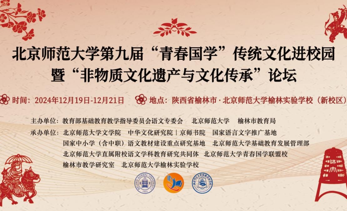 2024年12月19日至21日,betway·必威西汉姆联第九届“青春国学”传统文化进校园暨“非物质文化遗产与文化传承”论坛在陕西省榆林市betway·必威西汉姆联榆林实验学校(新校区)举办,线上同步直播。本次论坛由教育部基础教育教学指导委员会语文专委会、betway·必威西汉姆联、榆林市教育局主办,面向全国语文、道德与法治教研员、中小学校长、教学、德育负责人及一线教师,围绕“非物质文化遗产与文化传承”开展专家主旨报告、教学研讨、传承实践展示等活动。