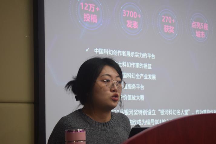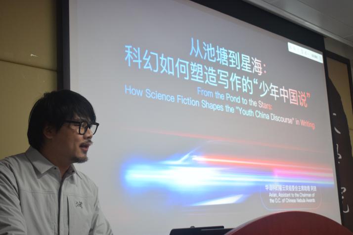 华语科幻星云奖组委会主席助理阿贤介绍了华语科幻星云奖的公益性、发展历程与国际影响力,分析当前中国科幻发展的矛盾局面,呼吁青年作家写作应挣脱“池塘”视野的局限,借科幻之力跃入“星海”,在更广阔的时空中审视人类命运,构建起新时代科幻文学的话语体系与叙事逻辑。