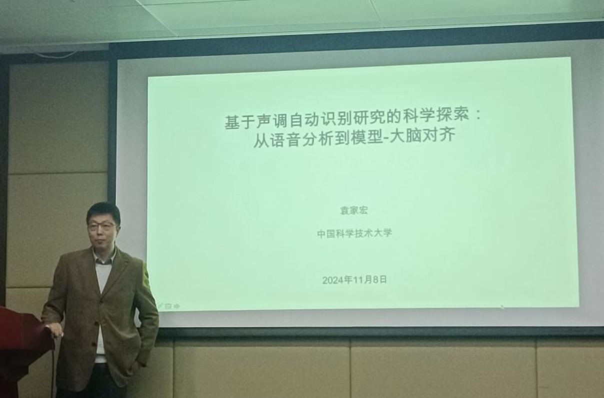 2024年11月8日下午,我院在主楼C区5045报告厅举行京师中文大讲堂第19场讲座,主题为“基于声调自动识别研究的科学探索:从语音分析到模型-大脑对齐”,主讲人为袁家宏教授。袁家宏教授是大数据语音学、人工智能语言学方向的著名学者,现为中国科学技术大学人文与社会科学学院教授。讲座由必威betway西汉姆理论语言学研究所所长许小颖老师主持,应用语言学研究所所长胡佳佳老师、曹梦雪老师,理论语言学研究所汪高武老师、钟蔚苹老师、余德江老师与谈。讲座主要分为四部分。