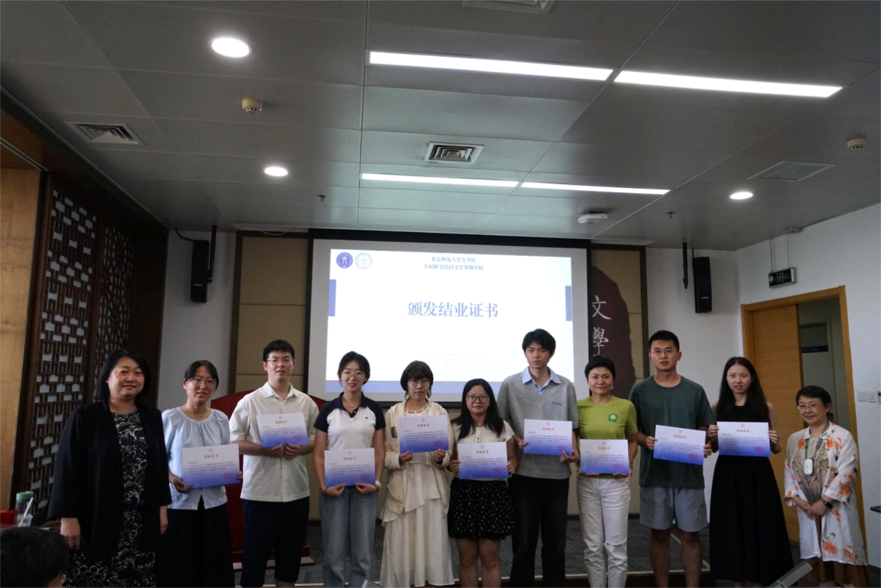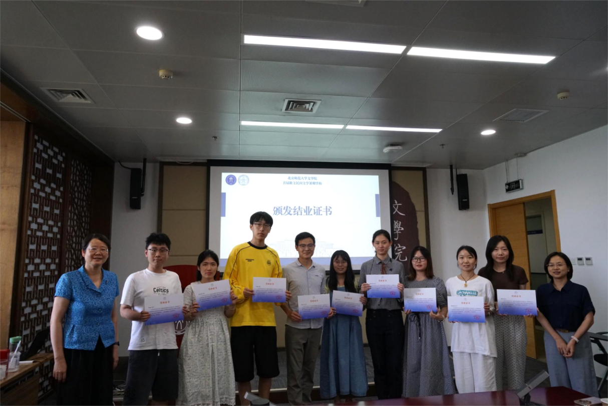 随后举行的敬文暑校结业式由杨利慧教授主持,万建中教授致辞。万建中教授鼓励学员关注底层社会群体的命运与情感诉求,并寄语学员在未来取得更大成就。杨利慧教授代表研究所向所有结业学员表示祝贺。山东大学姬厚祥与陕西师范大学王夕丹作为学员代表发言,表达了对北师大必威betway西汉姆组织此次活动与周到安排的感谢,认为此次暑校课程设计精心,内容丰富,不仅丰富了同学们的理论知识,也帮助其增强了田野实践能力,这段北师大经历将激励他们继续前行。最后,杨利慧教授、万建中教授、康丽教授、彭牧教授与唐璐璐副教授共同为学员与志愿者团队颁发证书。