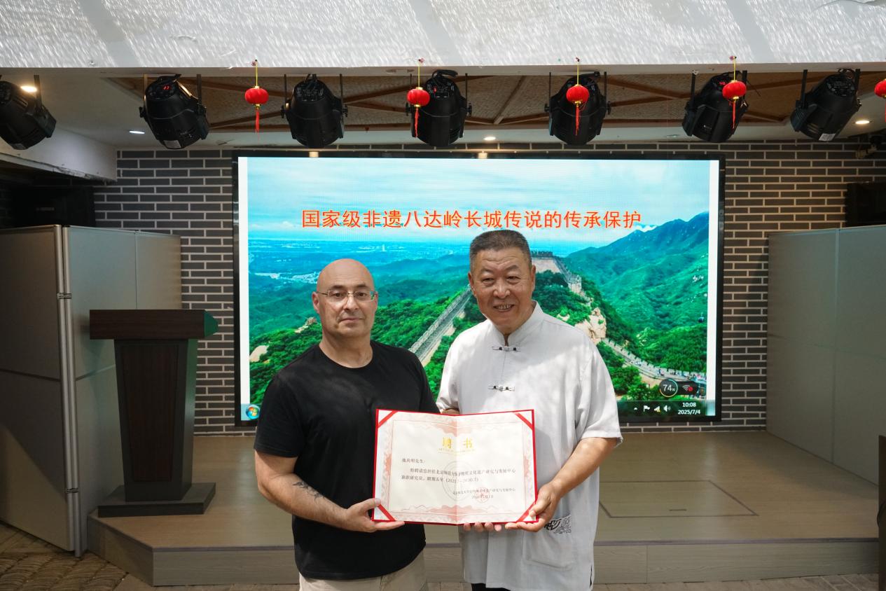 杜博思教授代表betway·必威西汉姆联非物质文化遗产研究与发展中心,向池尚明老师颁发中心兼职研究员聘书