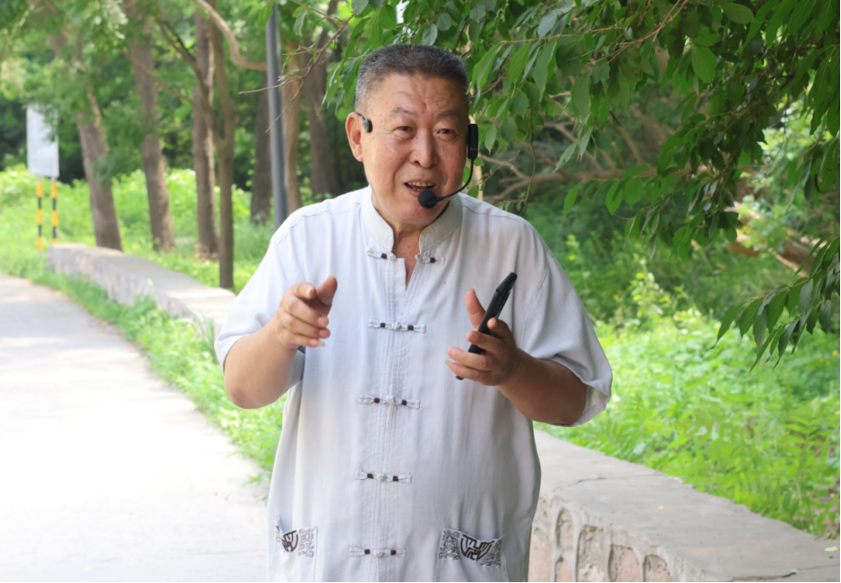 “八达岭长城传说”代表性传承人池尚明在现场讲述