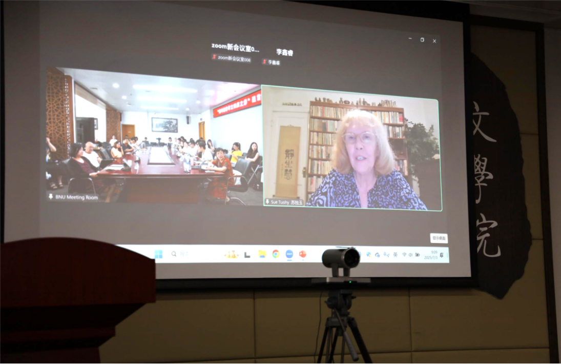 与此同时,敬文暑校的学术探索仍在深入。7月3日上午,美国印第安纳大学荣休高级讲师苏独玉(Sue Tuohy)主讲了《民歌研究的基本概念与方法:条件和媒介变化中的重复模式》,彭牧教授主持。苏老师剖析了中国西北“花儿”歌曲在长时段传播和再现中的重复模式,指出民歌“重复”是文化与政治环境选择、固化并赋予意义的过程。