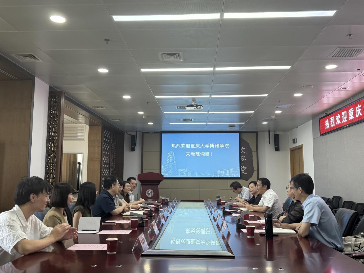 2025年6月5日上午,重庆大学博雅学院副院长(代院长)李广益、中文系主任金浪、支部书记万曼璐、中文系副主任肖馨瑶、科研秘书罗宇、中文系学科秘书张振、崔文骏一行7人前来我院调研。交流会由书记周云磊主持。
