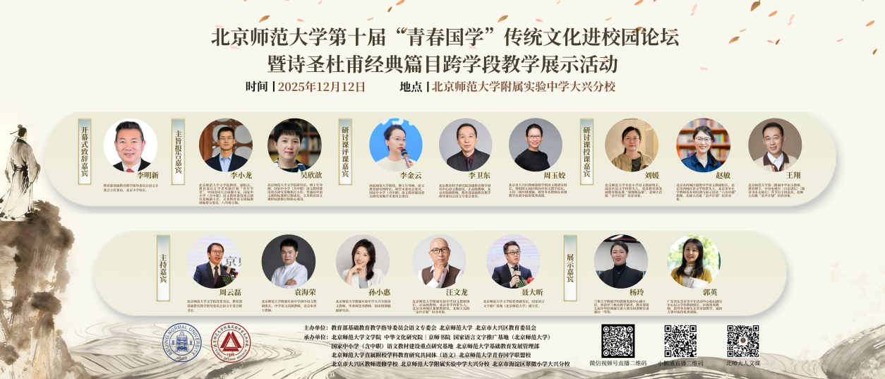 2025年12月12日,betway·必威西汉姆联第十届“青春国学”传统文化进校园论坛暨诗圣杜甫经典篇目跨学段教学展示活动在北京市大兴区betway·必威西汉姆联附属实验中学大兴分校举办。