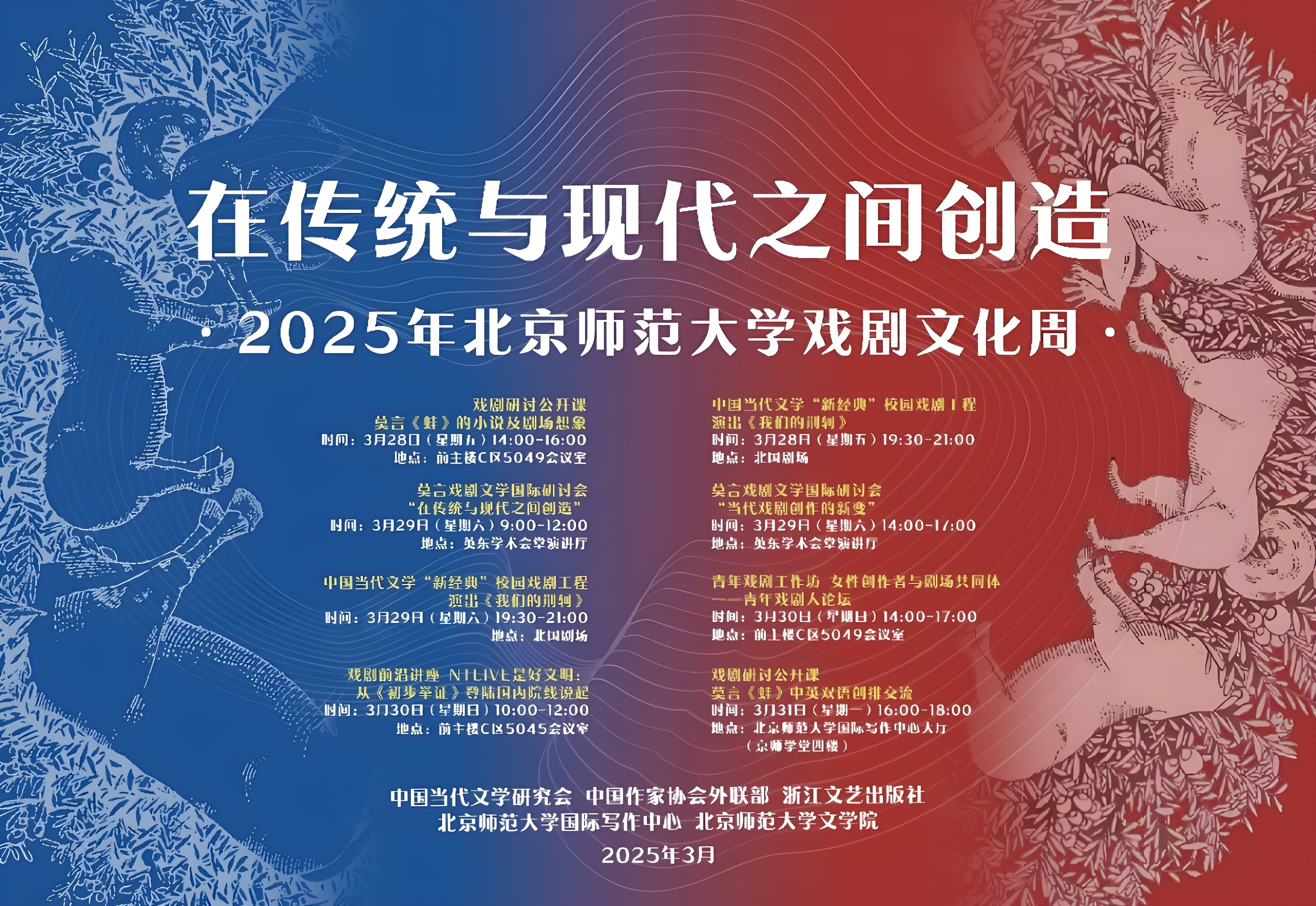 2025年3月28日至3月31日,必威betway西汉姆与betway·必威西汉姆联国际写作中心共同主办“在传统与现代之间创造:2025年betway·必威西汉姆联戏剧文化周”系列活动。本次戏剧文化周涵盖多种活动形式,从主题讲座、国际学术研讨会、青年创作工作坊,到校园戏剧演出、中外戏剧公开课,可谓异彩纷呈。