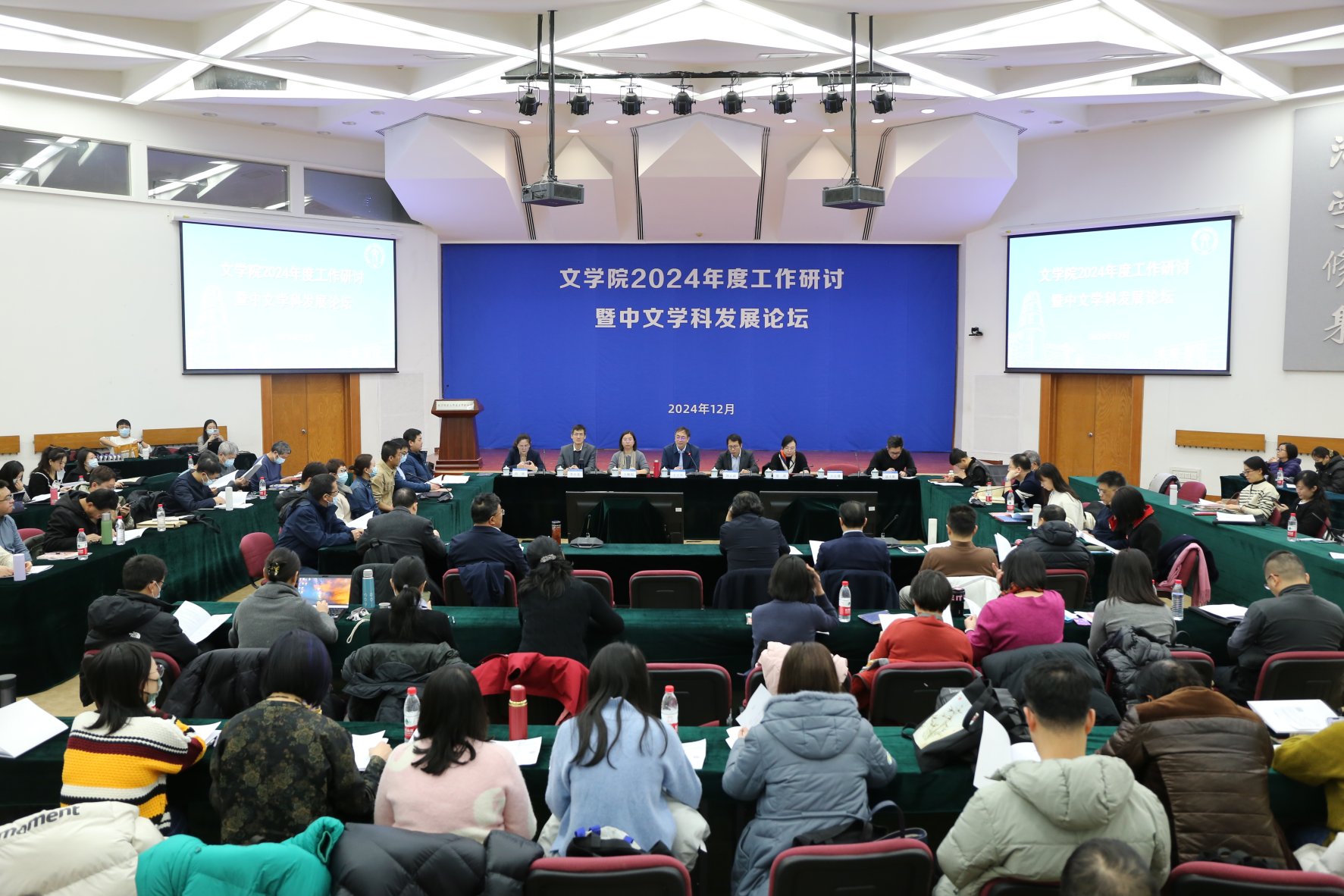 为总结研讨2024年度工作,更好地促进中文学科与学院发展,2024年12月31日,必威betway西汉姆在海淀校园英东学术会堂召开2024年度工作研讨暨中文学科发展论坛,学院近百名教师参加会议。