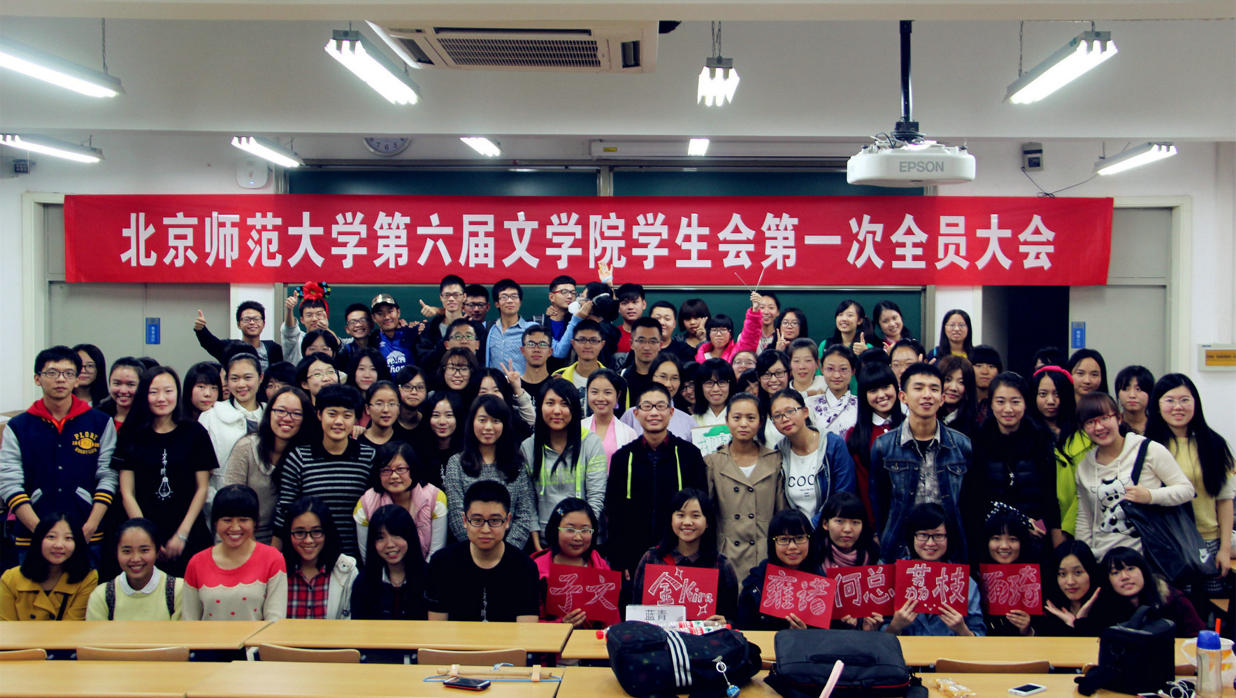 此次全员大会的第一个环节为全体部长与部员见面,部员们发出的一浪高过一浪的欢呼声与口号声体现出他们与部长在近两个月的时间里结下的深厚情谊。接下来,熊艺钧老师与蓝青主席先后上台发言,表达了对学生会新成员的热烈欢迎以及与对新学年学生会工作的展望与期待。