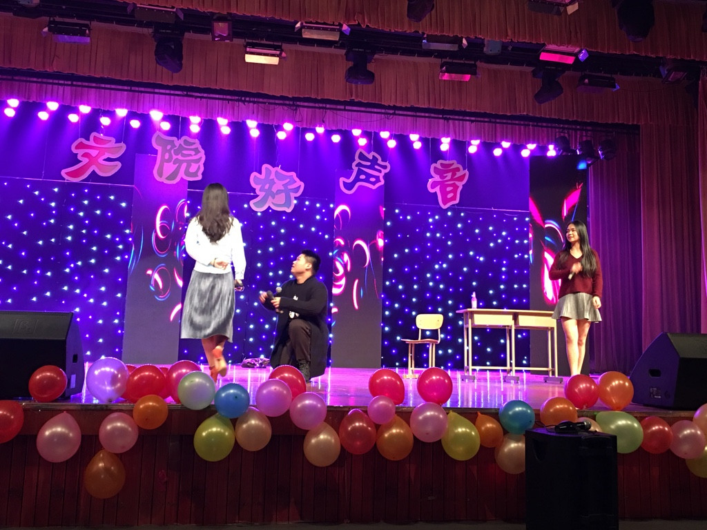 更酷炫的是,为了满足无法到现场观看比赛的师生们的观看需求,本次文院好声音还开设了花椒直播平台的直播房间,超过500位的观众线上收看了此次活动,他们通过留言回复等方式参与了比赛,传递了对于比赛的关注与祝福。