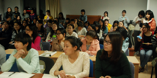 讲座伊始,高旷师姐首先跟同学们分享了自己的求职经历。她详细讲述了自己面试人大附中的过程,跟同学们分享自己在说课、进班试讲等环节的面试经验,使同学们对面试的流程及细节有了深入细致的了解。