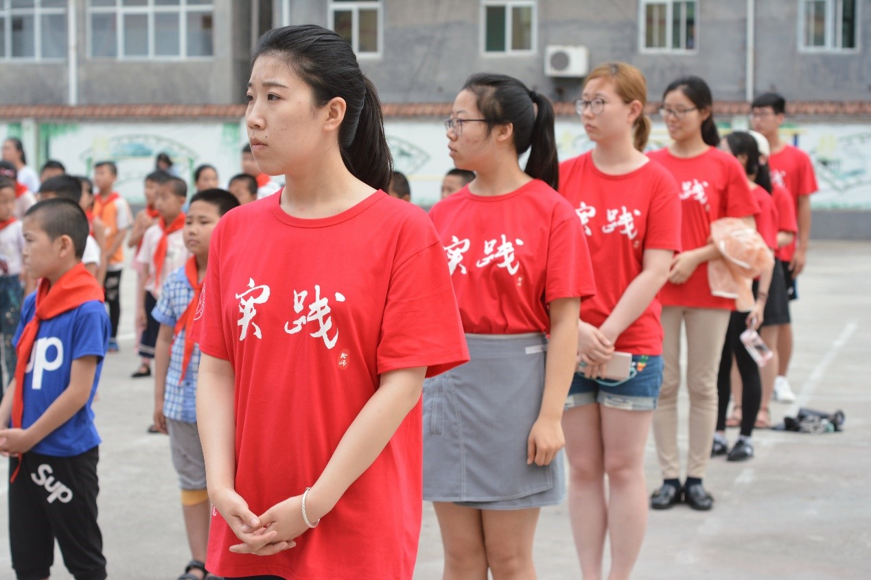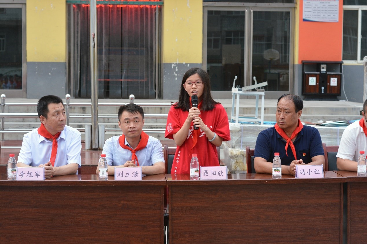 聂阳欣代表北师大全体支教成员进行了发言,介绍了支教与调研活动的基本情况,并宣誓本次支教活动会恪守师大人“学为人师,行为世范”的准则,给桥上乡中学师生带来不一样的体验。