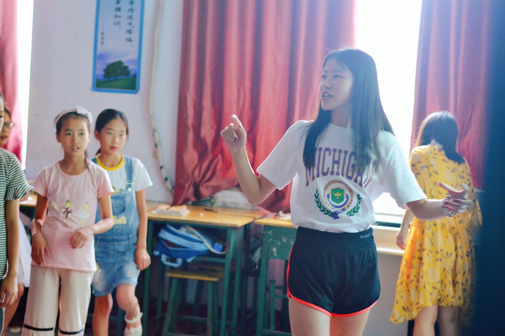 支教队全体成员针对桥上乡中学的具体学习情况安排了支教课程,包括写作阅读课、中国城市概览、逻辑思维训练、国际音标入门、诗词吟唱、英语技能训练、趣味英语、基础地图认知、心理健康教育、摄影理论与鉴赏、山西历史文化、阳光体育运动等文化基础课程,此外还有中国书画鉴赏、爵士舞入门、英文影视鉴赏等综合素质拓展课程。