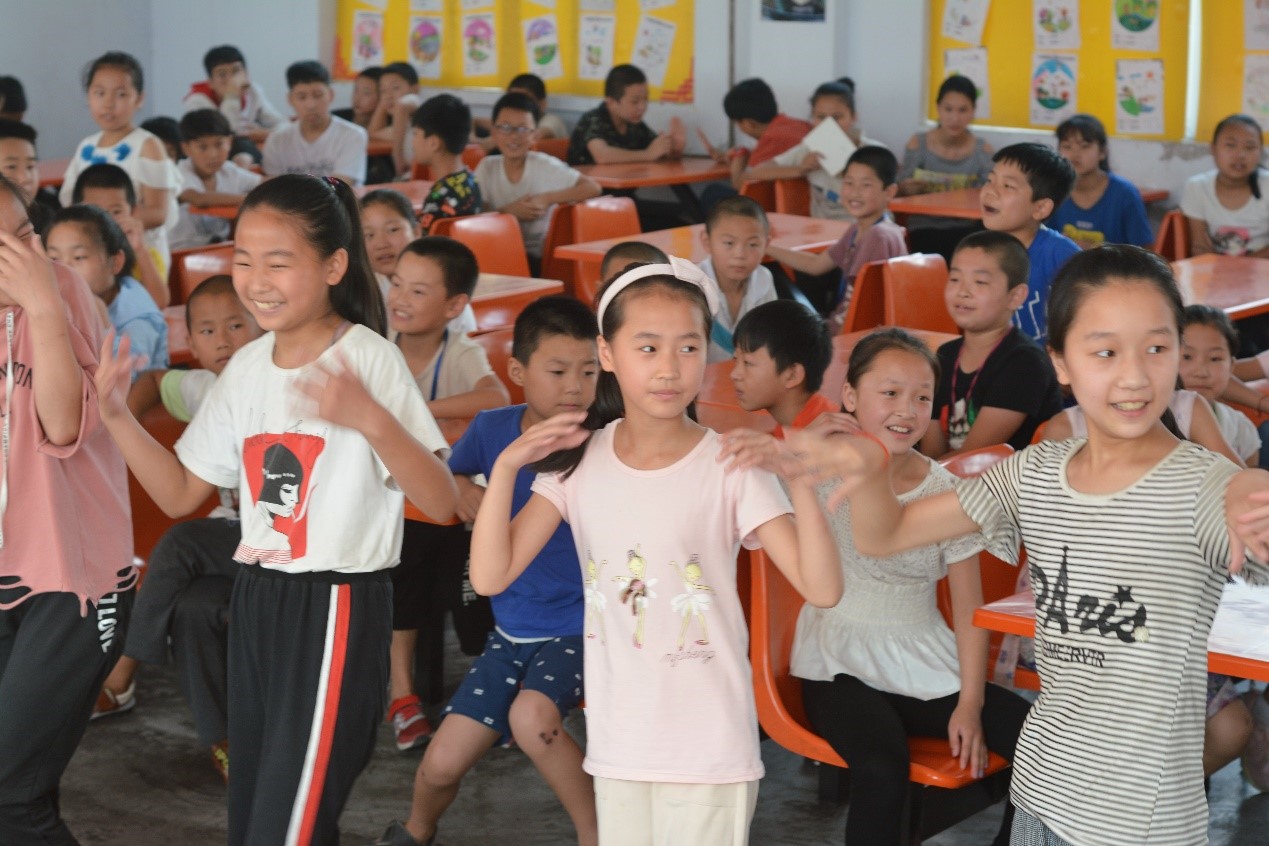 课程结束之后,支教团队带领五个班的学生在学校食堂举办了简单的送别仪式,各年级代表纷纷表演了节目,大家依依不舍,支教情谊融化在每个人的心中。