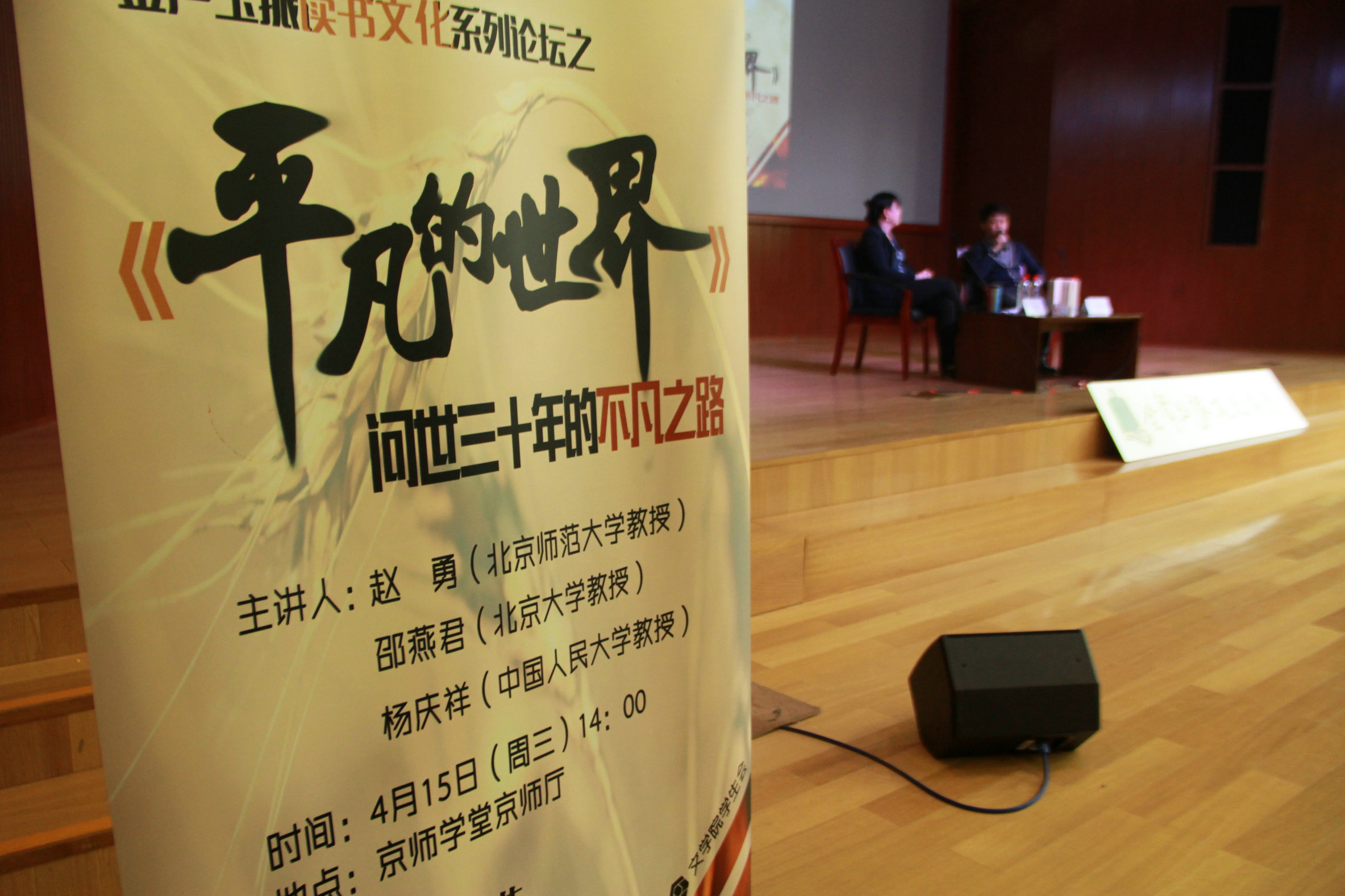 2015年4月15日下午13时30分,由betway·必威西汉姆联、北京十月文艺出版社主办,党委宣传部、必威betway西汉姆学生会承办的的第八届北京大学生读书文化节、金声玉振读书文化系列论坛之“《平凡的世界》问世三十年的不凡之路”专场在betway·必威西汉姆联京师学堂京师厅举行。北京大学教授邵燕君、中国人民大学副教授杨庆祥围绕路遥名作《平凡的世界》展开精彩对谈。