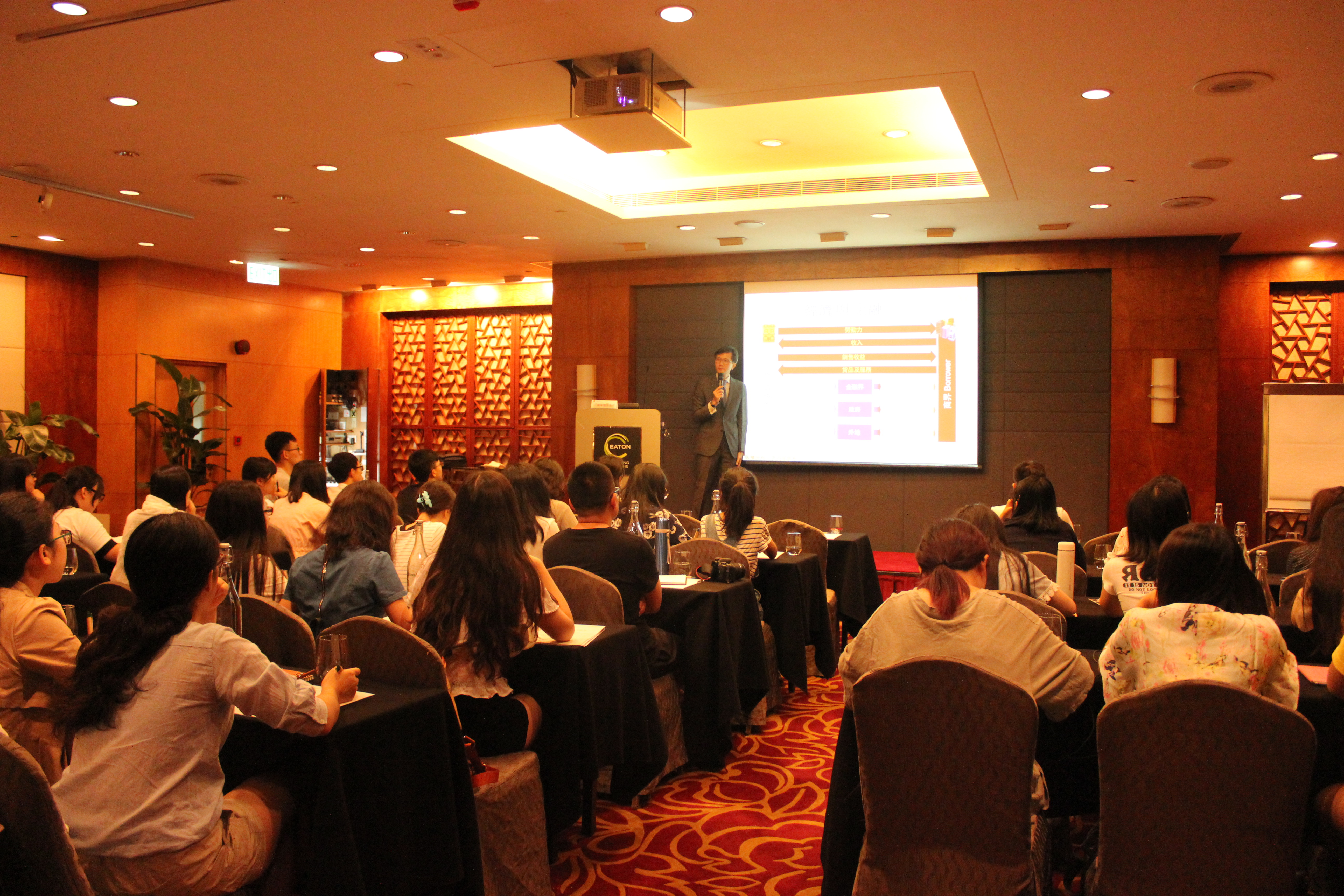 上午十点,同学们在逸东酒店佐敦厅参加了"香港的金融制度"课程讲座。本次讲座,由香港上市金融集团助理董事陈家强先生主讲。陈先生从经济与金融的基本概念、货币及银行体系、香港特区政府的目标及政策、香港作为国际金融中心、香港金融市场的法规框架、金融体系政策的架构等方面出发,详细而专业地向大家介绍了香港的证券市场、期货市场、银行业、保险业等金融市场。通过讲座,帮助同学们了解到了香港"自由不干预"的金融政策、香港金融管理局的历史和职能、香港银行业三级体制、香港即时支付结算系统(RTGS)等知识。