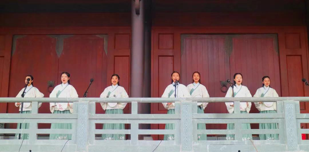 下午两点,古典诗词联吟活动正式开始。汨罗市政府组织了千余名中小学师生观看演出,海峡两岸诗社依次带来风采各异的诗词吟唱表演。
