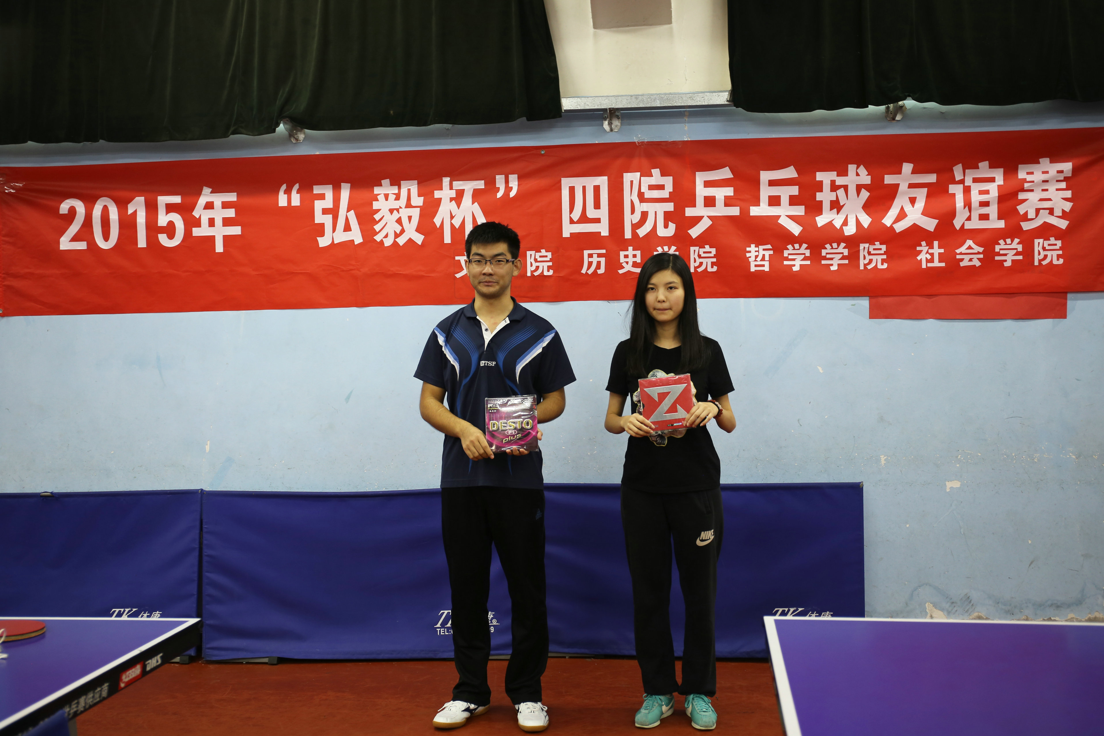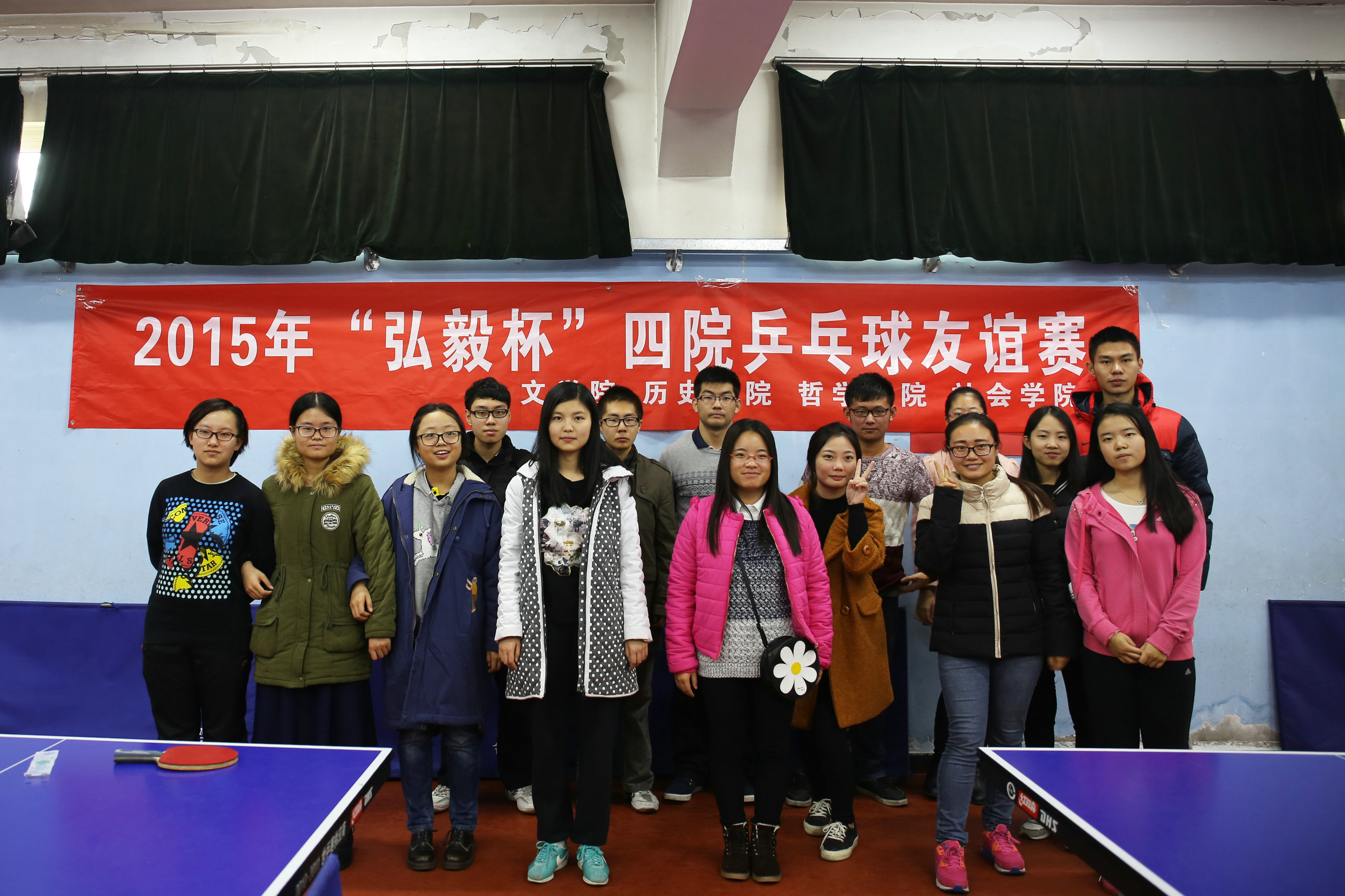 2015年11月29日上午九时,由必威betway西汉姆、历史学院、哲学学院和社会学院四院联合举办的“弘毅杯”四院乒乓球友谊赛在betway·必威西汉姆联乒乓球室举行,来自四个学院的十九名选手参与比赛。必威betway西汉姆九名选手全部晋级男子八强与女子八强,其中秦一夺得男子组冠军,张蓝允夺得女子组冠军。