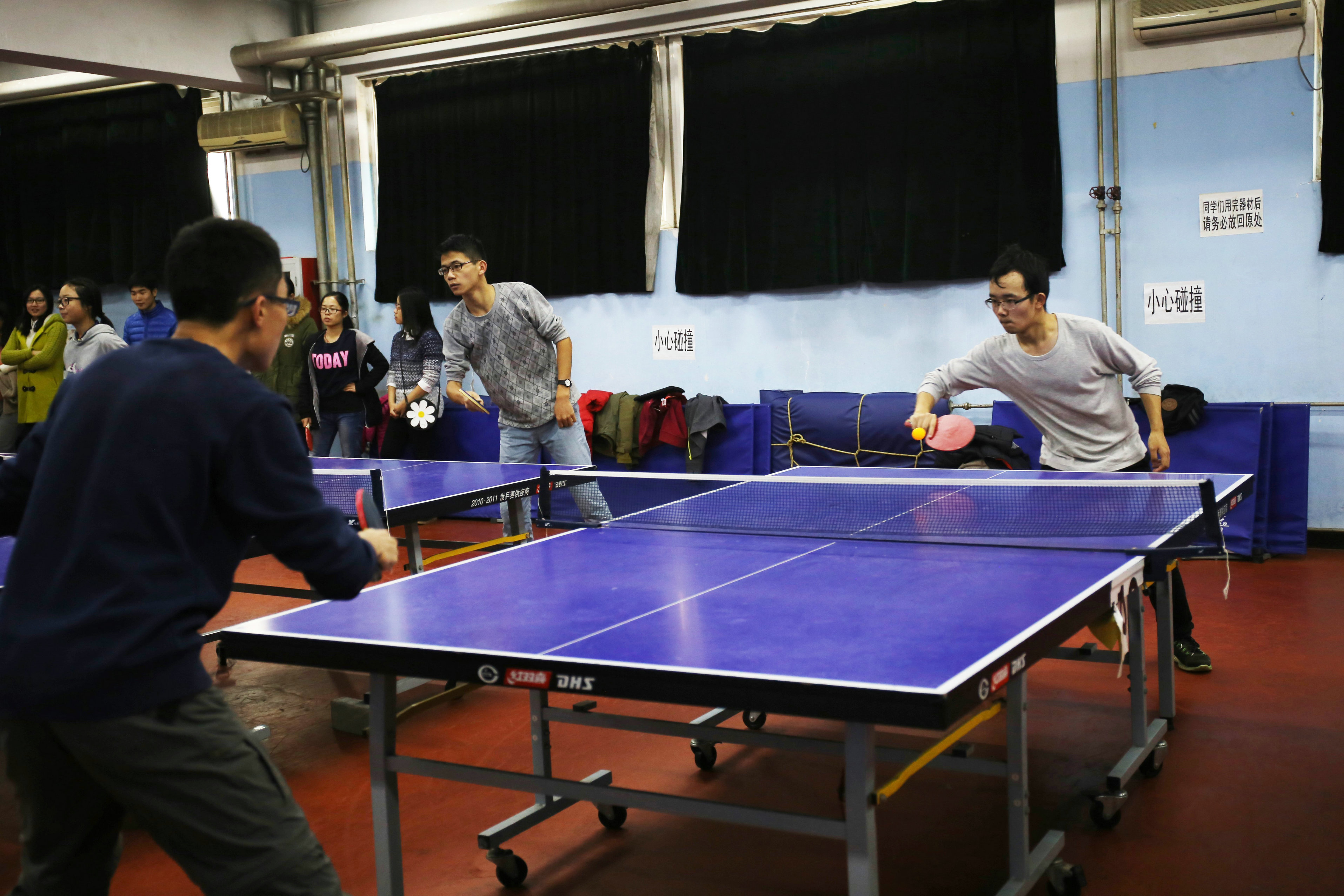 淘汰赛中,各院选手经过小组赛的热身早已进入状态,展开了激烈的对抗。最终,秦一顺利击败对手晋级四强。男子组半决赛中,秦一和对手展开了惊险的对攻,双方各有失误,比分一度呈现胶着态势。凭着过硬的反手弧圈球技术,秦一最终与对手拉开差距,以3:2的比分晋级决赛。